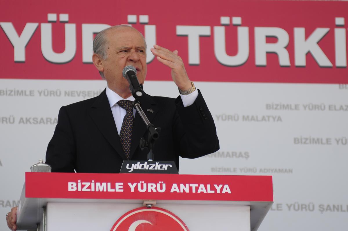 MHP lideri Devlet Bahçeli, Antalya'da halka seslendi. Antalyalılardan oy isteyen Bahçeli, 'Kaçınız bu otellerde tatil yapabild? Turizm olması gereken yerde değildir' dedi.
