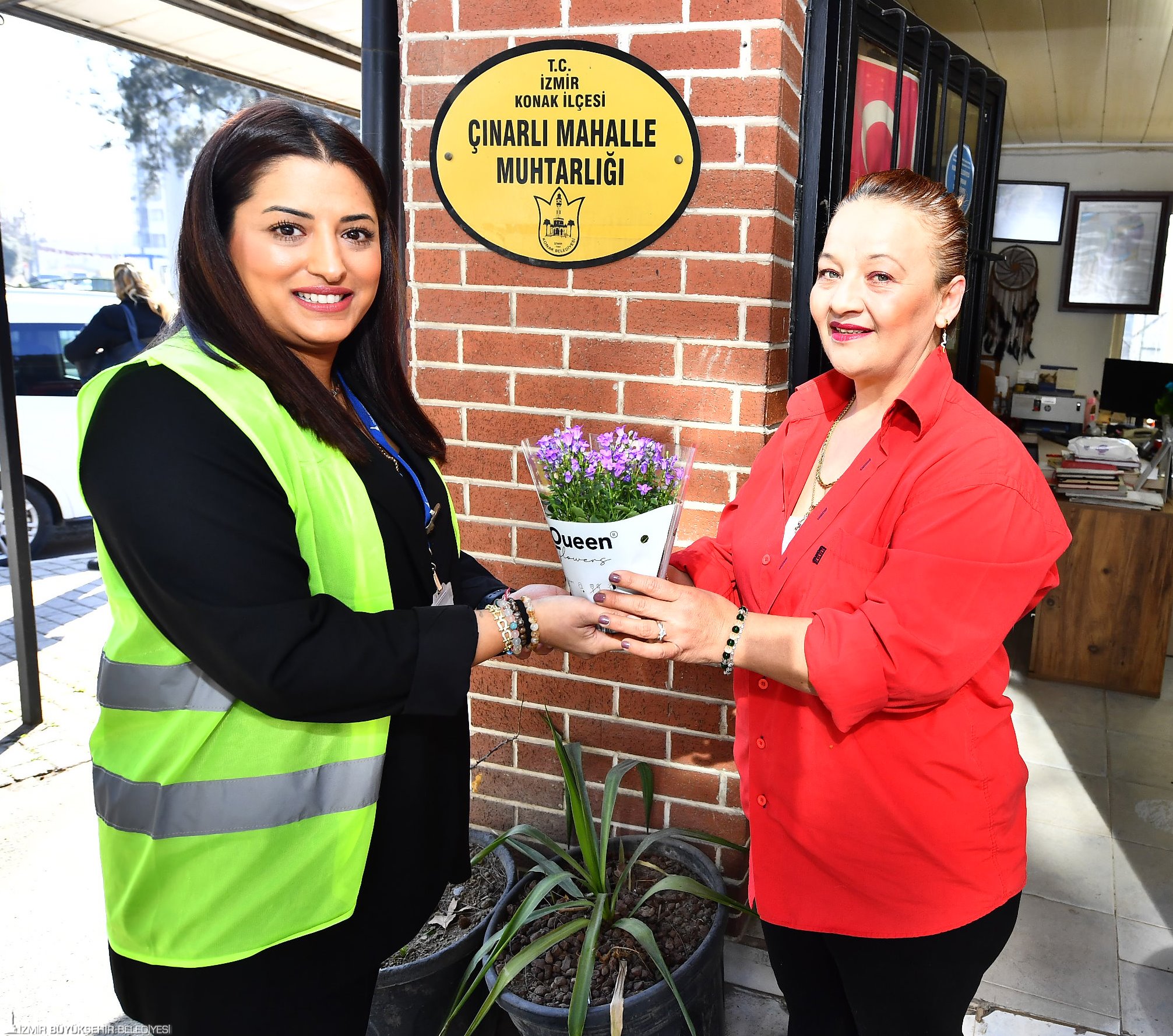 İzmir Büyükşehir Belediyesi tarafından 8 Mart Dünya Kadınlar Günü etkinlikleri kapsamında 30 ilçede hizmet veren 202 kadın muhtara mor çiçekler hediye edildi. Kadın muhtarlar bu anlamlı jest nedeniyle Büyükşehir Belediyesi’ne teşekkür etti.