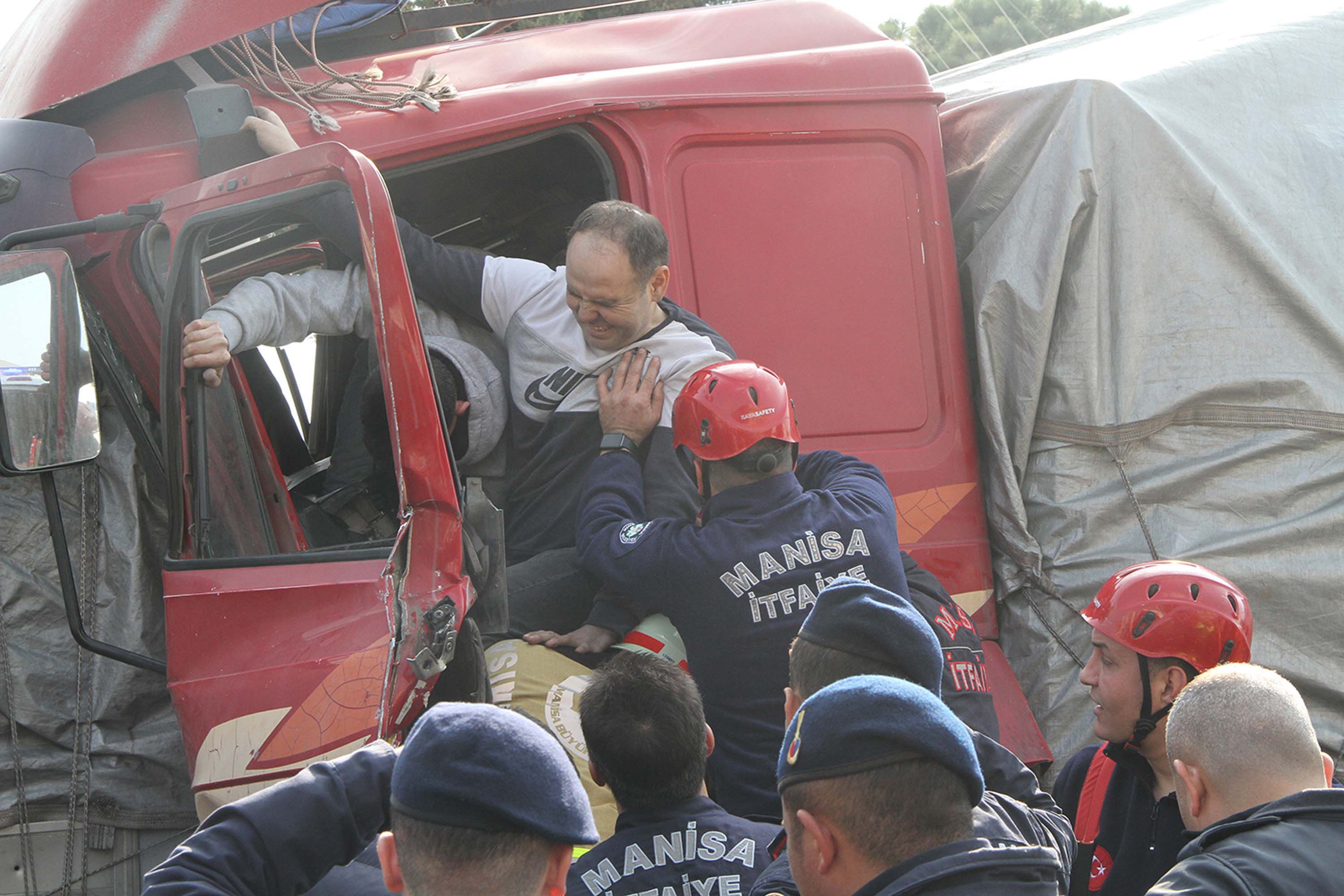 Manisa'nın Kula ilçesinde, önündeki TIR'a arkadan çarpan TIR'ın şoförü Harun Alaca, sıkışarak yaralandı. Alaca, sıkıştığı yerden itfaiye ekipleri tarafından kurtalıp, hastaneye kaldırıldı.