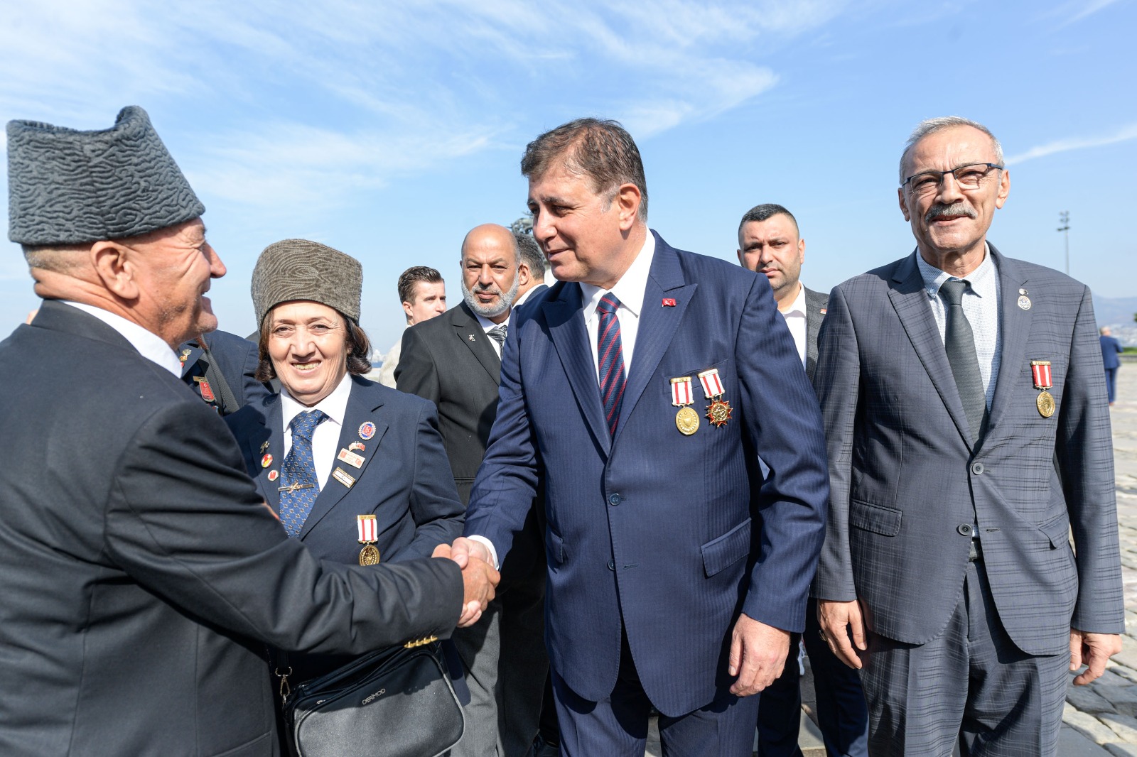 Başkan Tugay babasının madalyalarıyla kahramanların gününe katıldı