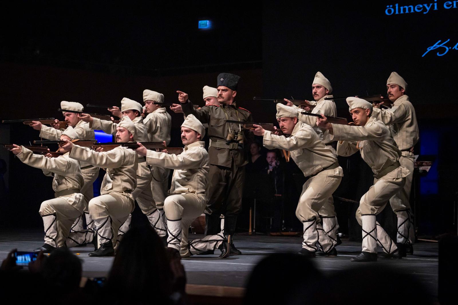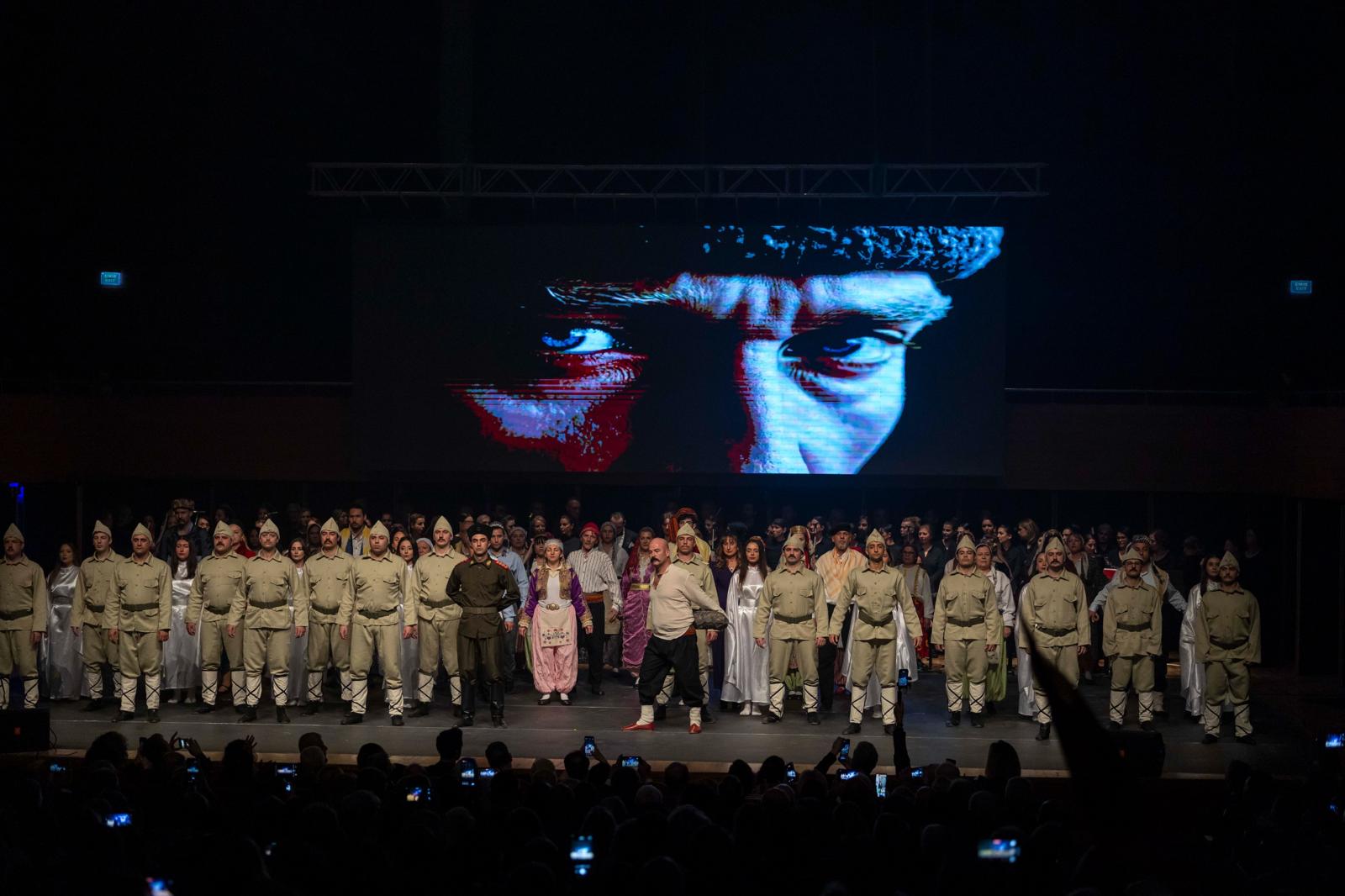 İzmir Büyükşehir Belediyesi Türk Halk Müziği Korosu, anlatının duygusal zeminini oluşturan ağıt ve kahramanlık türkülerini seslendirirken, Türk Halk Oyunları Topluluğu ise tarihsel süreci sahneye taşıdı.