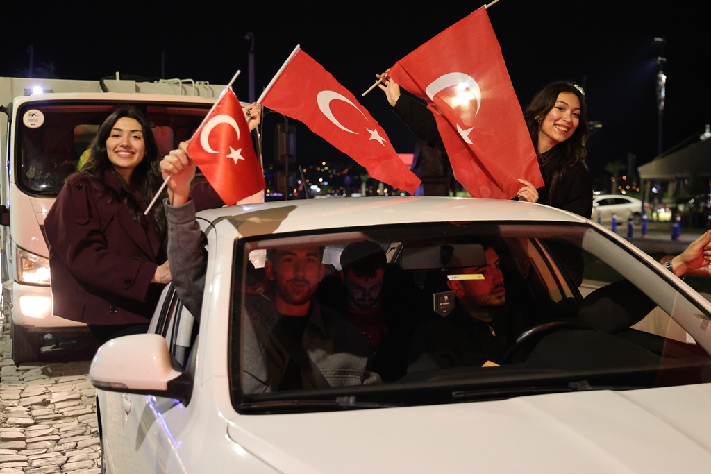 Araçları ile bölgeye gelen vatandaşların bir kısmı korna çalarak kutlamalara katılırken, bazı vatandaşlar ise ellerinde Türk bayrakları ile sevinç gösterisinde bulundu.