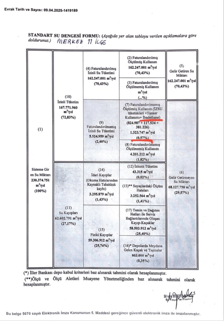 Atmaca, açıklamasında Standart Su Dengesi Formu’nu paylaşarak ibadethanelerin olduğu kısma dikkat çekti.