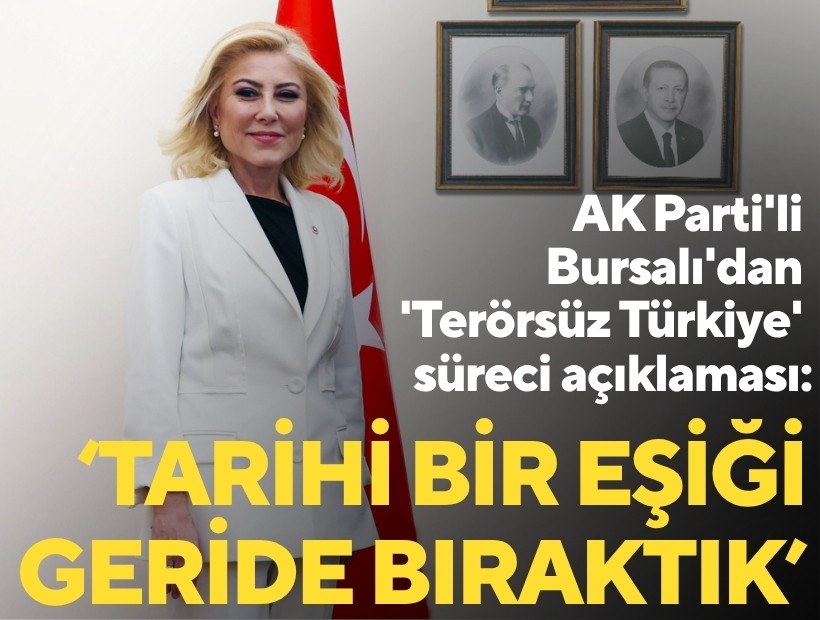 AK Parti İzmir Milletvekili Şebnem Bursalı, PKK’nın Türkiye içindeki unsurlarıyla birlikte Irak ve Suriye başta olmak üzere bölgedeki silahlı ve illegal yapılanmalarının feshi ve silah bırakmasına ilişkin son gelişmeleri değerlendirerek, “Terörsüz Türkiye sürecinde tarihi bir eşiği geride bıraktık” dedi.