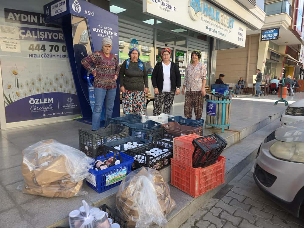 Kooperatife üye kadınların paketli ürünlerini Halk Ege Et’in Aydın’ın Didim, Söke ve Kuşadası’ndaki şubelerinin raflarından topladıkları görüntüler cep telefonu kameralarına yansıdı.