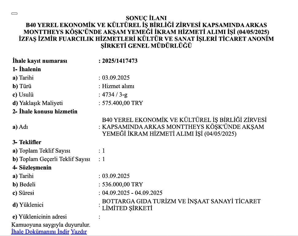 ''Siz Avrupalı’yı yemekle tavlıyacağınızı sanıyorsanız aldanıyorsunuz.'' diye açıklamasına devam eden AK Parti Grup Szöcüsü, ''Bu bir vizyon meselesi ve o vizyon maalesef sizde yok! Zaten bu kadar uzun ve detaylı açıklama yapmanızı suçüstü yakalanmanıza veriyoruz. 2 yıldır şirketlerde “İSTİSNAİ” kapsamda yapılan yemek, organizasyon vb. ihalelere dikkat çekmeye çalışıp, bu tür organizasyonlarda neden Büyükşehir Belediyesi’nin GRAND PLAZA Şirketini kullanmadığınızı soruyoruz. Gelen misafirleri kent lokantasına götürün demiyoruz ama, bu yemekleri Grand Plaza Şirketimizin işlettiği NEFES RESTAURANT ya da ASANSÖR RESTAURANT’ ta gerçekleştirseydiniz incileriniz mi dökülecekti? Her yıl İzmir’li hemşerilerimizin milyarlarca parasını şirketlere aktararak buharlaştırıyorsunuz. Karşılığında daha çok büyüyen bir kara delik var. İzfaş’ın ihalelerini 2024 yılında da dile getirmiş uyarılarımızı yapmıştık. Ama nafile nefes tüketmişiz, görüyoruz ki konserler, organizasyonlar ballı ihaleler tam gaz devam ediyor. İzbeton , Egeşehir ve kooperatifler arasında kurulan bermuda şeytan üçgeni binlerce insanımızın yüzlerce Belediye personelimizin geleceği, hayalleri ve milyarlarca parası yok oldu. Ama siz hala bu insanları milyarlarca Lira ödemeye zorluyor, üstü kapalı tehdit ederek dairelerini alamayacaklarını ima ediyorsunuz. İzfaş, 9 Ağustos 2023 yılında 50 bin TL sermayeyle kurulmuş İstanbul merkezli şirkete 26.08.2025 tarihinde 2.418.000 TL organizasyon işi, aynı tarihte 7.500.000 TL bedelle söyleşi adı altında organizasyon işi, 31.950.000 TL bedelle konser, 3.335.000 TL bedelle tek seferlik oyun parkuru hizmet alımı, ayrıca 2025 yılı içerisinde kimlerin istifade ettiğini bilmediğimiz yaklaşık 25 milyon TL tutarında lüks otellerde konaklama hizmet alımı İSTİSNAİ kapsamda yani 4734 Sayılı İhale Kanunu kapsamı dışında gerçekleştirilmiştir. Size soruyoruz, bu ne perhiz bu ne lahana turşusu! Özrünüz kabahatinizden büyük! Bir taraftan hizmet alımı yoluyla taşeron işçi çalıştırıp, personel fazlalığı var algısını oluşturuyor, diğer taraftan bu israf, savurganlık ve kötü yönetimin faturasını emekçilere kesiyorsunuz. Yüzlerce emekçi yüreği elinde ne zaman işten çıkarılacağım kaygısıyla stres altında ezilirken, diğer taraftan birilerine yakın emekçi görünümlü kişiler konumlarını koruyup keyif içerisinde hayatlarını devam ettiriyor. Ya siz? Siz de o etkinlik senin, bu yemek benim gününüzü gün ediyorsunuz. Sonra da emekçi maaşları üzerinden nutuk çekip, “klimayı 28 dereceden 24 dereceye düşürün” şovu yapıyorsunuz. İzmir’li hemşerilerimiz artık bunu yemiyor bilesiniz. Dürüst olun, şeffaf olun, İzmir’linin parasını bir takım şahıs ve şirketlere peşkeş çekmeye son verin.''
