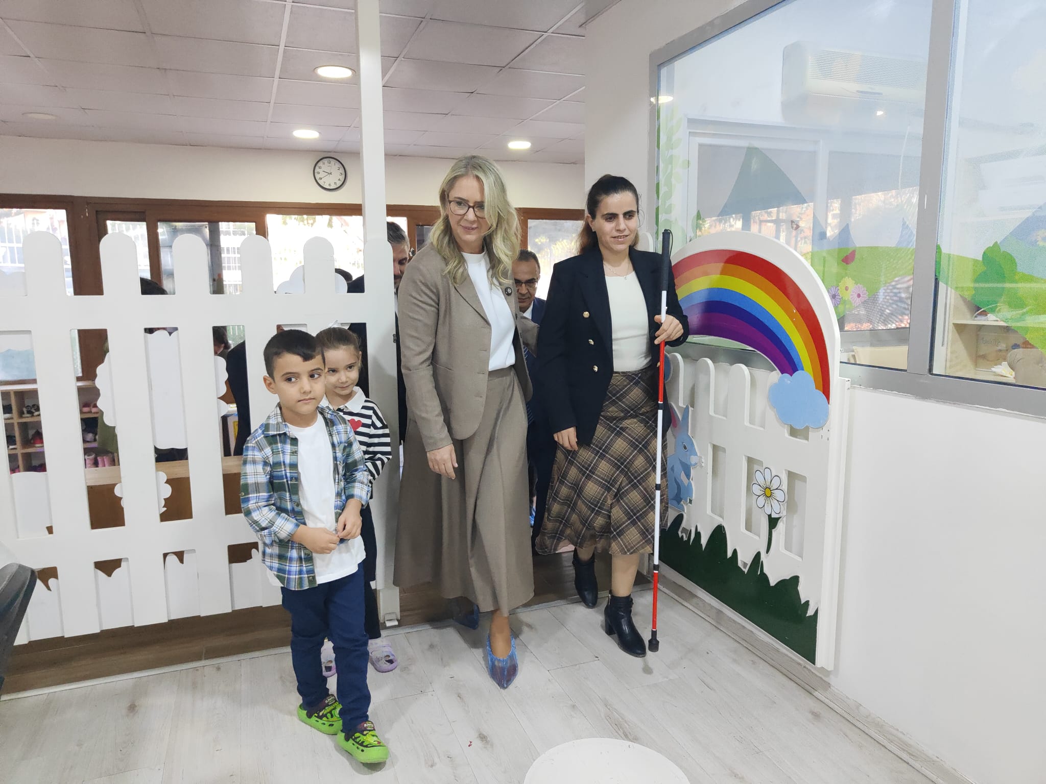 Öğretmen Burcu Salman da ziyaretten duyduğu memnuniyeti dile getirerek şunları söyledi: “Kendi hayatımı kurma noktasında çabaladım ve geldiğim nokta olarak buradayım. Çocukların yanında çok mutluyum. Çok keyif alıyorum çocuklarla birlikte olmaktan. En çok elimdeki bastonumu merak ediyorlar ve ‘bu nedir’ diye soruyorlar. Anlatıyorum onlara. Gözlerini kapatıp kendileri de sınıf ortamında zaman zaman deniyorlar. Empati kazanıyorlar ve birbirlerini de uyarıyorlar. Öğrenmiş olan öğrenci, ‘hayır öyle yapmamalısın. Yoksa öğretmenimiz takılıp düşebilir’ gibi ikazlarda bulunabiliyorlar. Tek istediğim yol üzerindeki tabelaları, yanlış dikilmiş ağaçları kaldırım üzerindeki tezgah ve benzeri eşyaların daha fazla denetlenmesi ve uygun olarak konumlandırılması.”