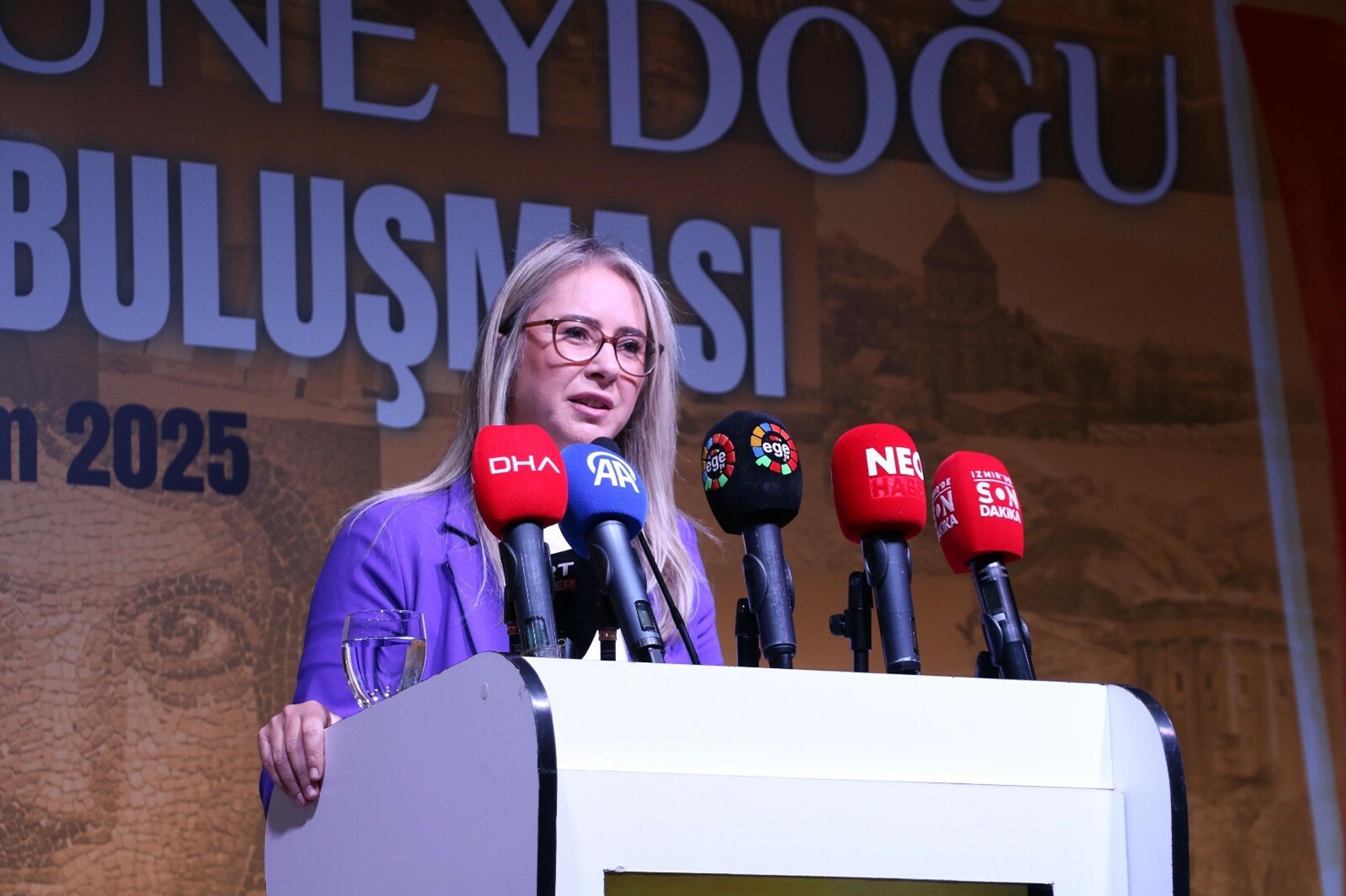İzmir Milletvekili Ceyda Bölünmez Çankırı, “Farklı şehirlerden, kültürlerden gelmiş olsak da hepimiz kardeşiz. Bizim bir derdimiz, hedefimiz var. Çünkü biz İzmir’i seviyoruz. Geçtiğimiz ay Menderes Çukuraltı’ndaki ziyaretimizde güzel bir manzarayla karşılaştık. Sohbet sırasında incelediğim kitaplardan birinde şöyle yazıyordu: düşe kalka büyüyen bir çocuğun kalbini taşıyoruz. Acılar gördük ki ocaklar söndü. Bu millet düşse bile kalkmayı bildi. Bu ülke terörsüz bir yarına uyanabilir dedik. O uykudan uyandık. Bu ülkeye diz çöktüremeyeceklerine biz inanıyoruz. 2015 yılında Mardin milletvekili olduğumda çok zor günler geçirdik. Bir ananın duası ve bir askerin son nefesi vardı. Çok şükür anaların ağlaması son buldu. Çünkü Türkiye artık terörün değil umudun adıdır. Bugün Recep Tayyip Erdoğan ve Devlet Bahçeli sayesinde terör son bulmuştur” ifadelerini kullandı.