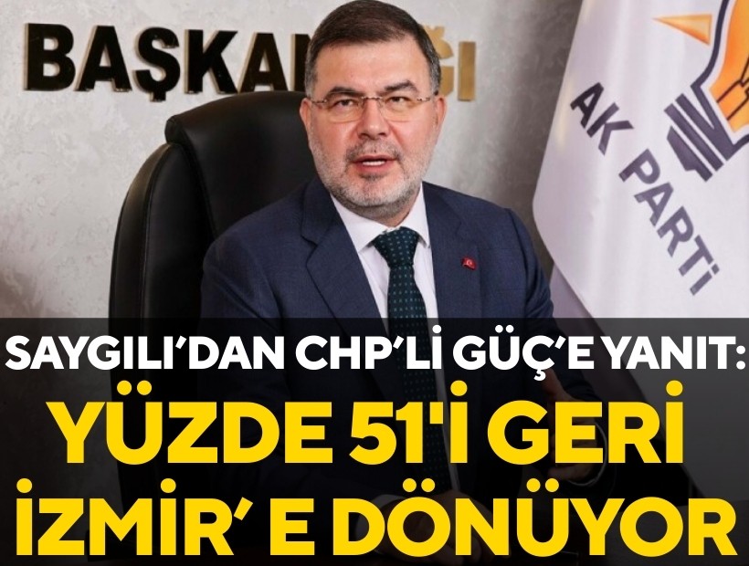AK Parti İzmir İl Başkanı Bilal Saygılı, CHP İl Başkanı Çağatay Güç'ün hükümete yönelik vergi ve yatırım açıklamalarına, "CHP uzun yıllar boyunca “İzmir’den toplanan her 40 liradan yalnızca 1 lira geri geliyor” diyordu. Sayın Güç şimdi çıkmış, yüzde 25'i yani “Her 4 liradan 1’i geri geliyor” diyor. Demek ki gerçeklere yaklaşmaya başlamışsınız… Biraz daha çalışırsanız doğru rakamları da bulacaksınız. İzmir’den toplanan verginin %51’i yine İzmir için harcanmaktadır. Sayın Güç’e tavsiyemiz: Gelir gelmez başladığı bu tür algısal açıklamaları bir kenara bırakıp, İzmir Büyükşehir Belediyesi Genel Sekreter Yardımcılığı döneminde belediyeyi temsil ettiği İZBAN Yönetim Kurulu Başkanlığı sırasında aldığı kararların arkasında durmasıdır.'' diyerek cevap verdi.