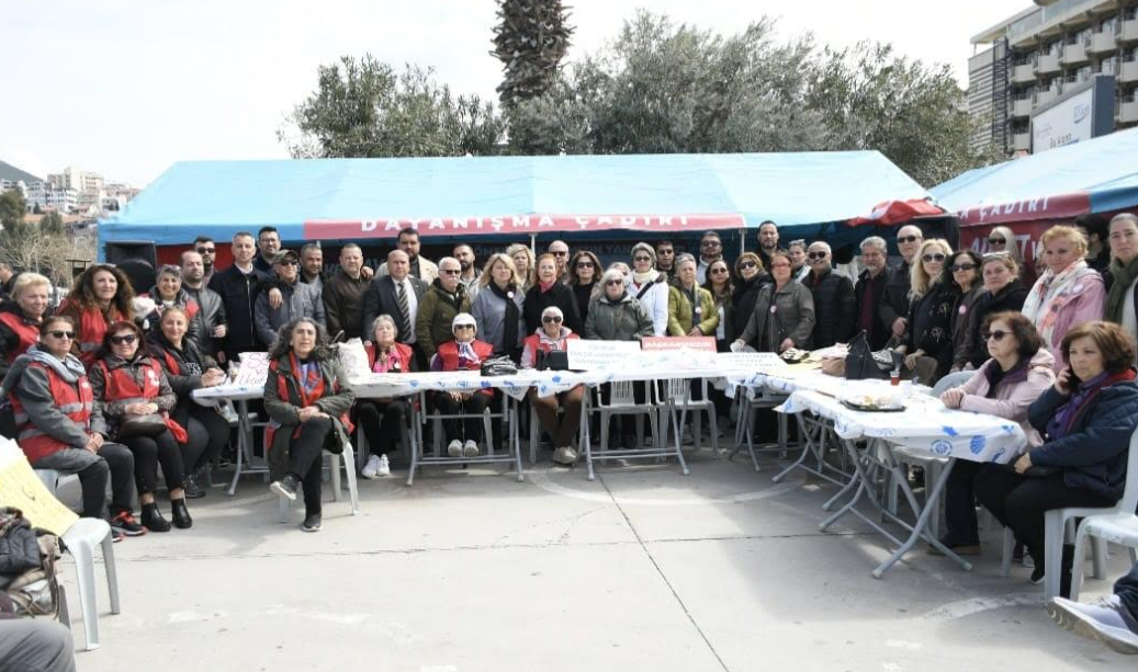 Dayanışma çadırını ziyaret eden bir diğer heyet olan Cumhuriyet Halk Partisi Söke İlçe Örgütü adına konuşan İlçe Başkanı Erkan Polat ise yaşanan sürecin hukuksuz olduğunu savunarak tepki gösterdi.