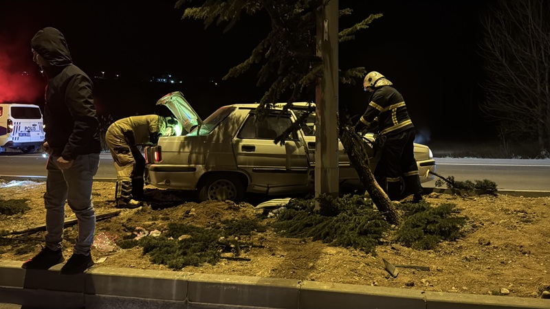 Ağaca ve aydınlatma direğine çarpan otomobilin sürücüsü yaralandı