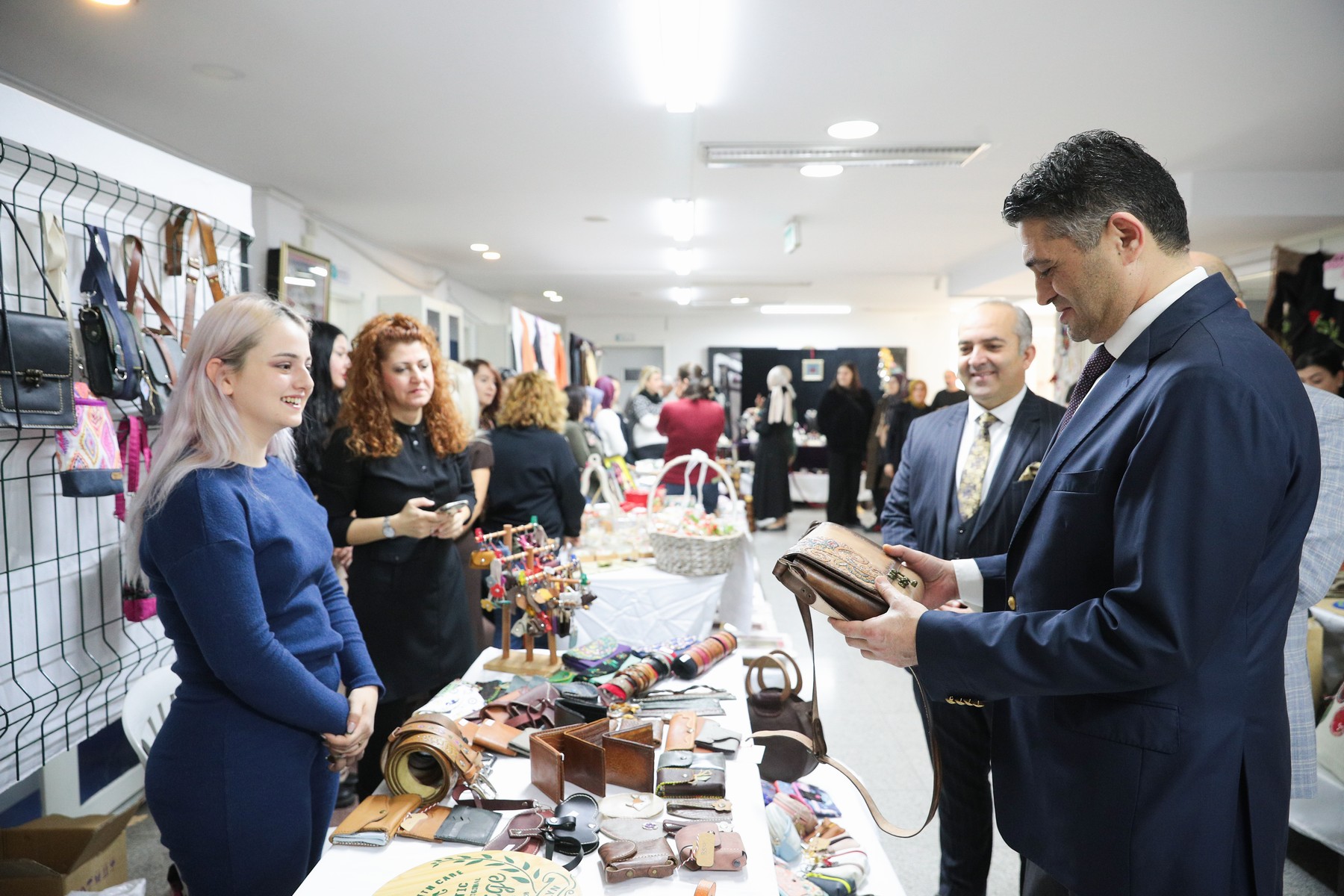 Açılışta stantları tek tek gezen Başkan Serkan Acar, kursiyerlere hayırlı olsun dileklerini ileterek ürünler hakkında bilgi aldı ve emek veren kursiyerlerle sohbet etti.