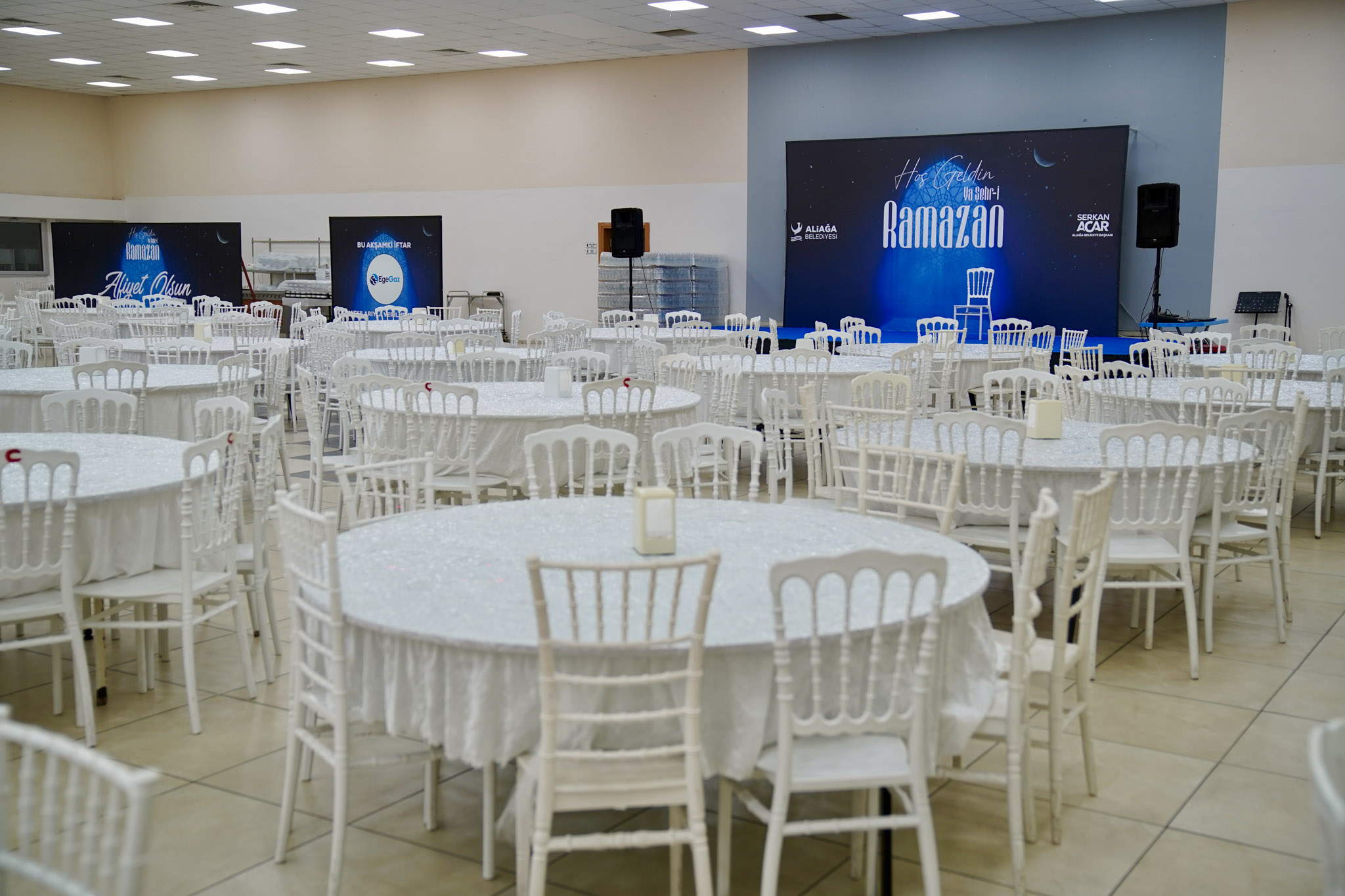 Aliağa Belediyesi tarafından düzenlenen Ramazan programı kapsamında, Yeni Mahalle Düğün Salonu ve yanında kurulan çadırlarda her gün 1000 kişilik iftar sofrası kurulacak. Vatandaşlar aynı sofrada oruç açarak Ramazan’ın birlik ve beraberlik ruhunu hep birlikte yaşayacak.