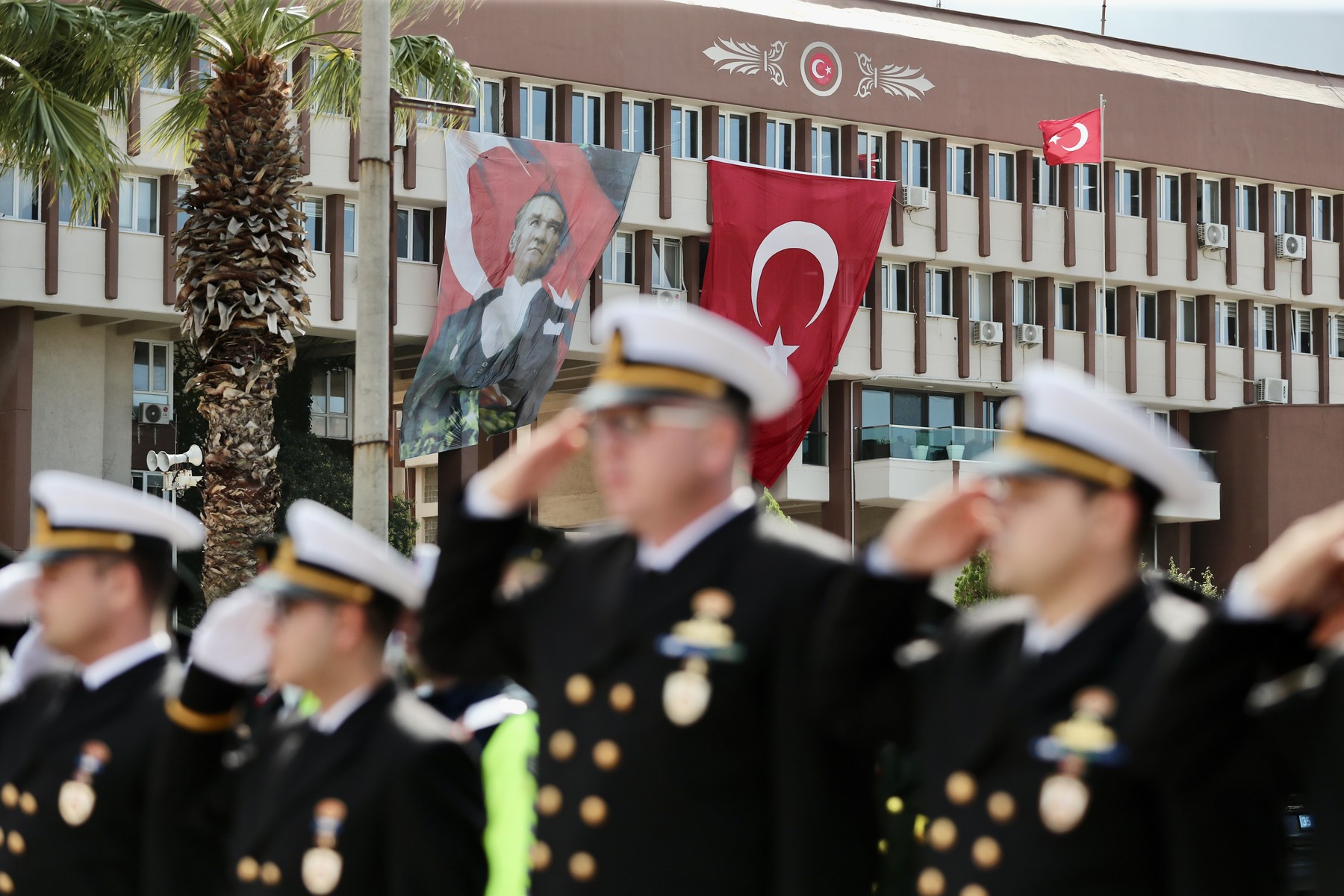 Aliağa Kaymakamlığı tarafından düzenlenen törende; Aliağa Kaymakamı Zekeriya Güney, Aliağa Belediye Başkanı Serkan Acar ve Garnizon Komutanı Albay Ali Güler, Atatürk Anıtı’na çelenk sundu.