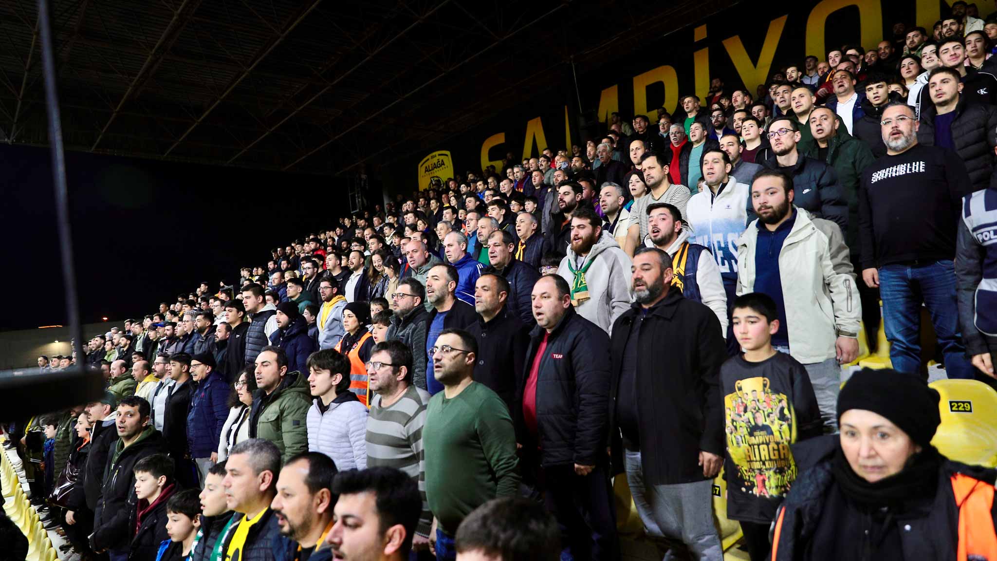 Tarihi karşılaşmaya Aliağalı futbolseverler büyük ilgi gösterdi. Tribünleri dolduran taraftarlar, maç boyunca takımlarına güçlü bir destek vererek statta coşkulu bir atmosfer oluşturdu.