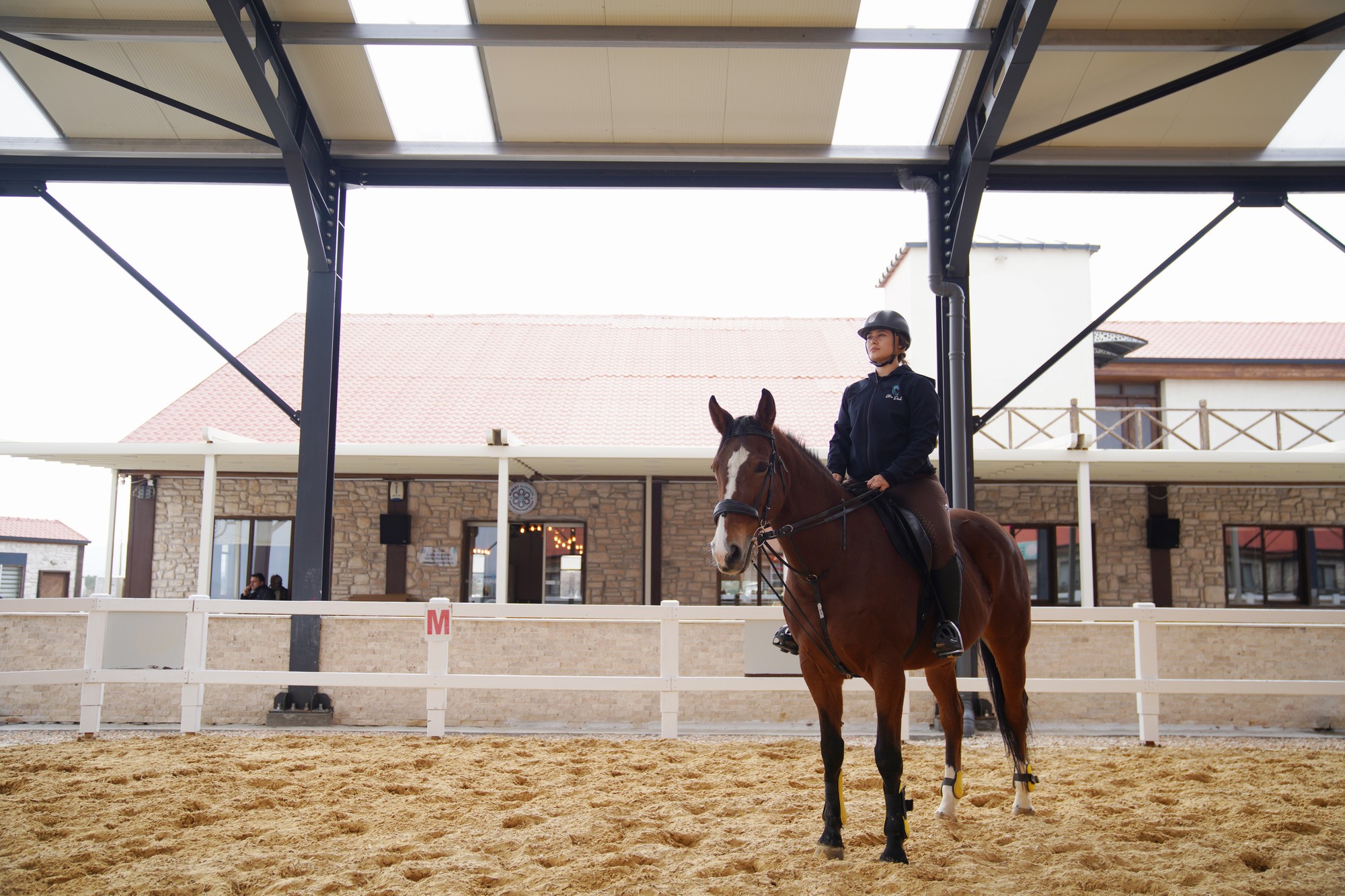 Yaz ve kış şartlarından etkilenmeden kullanılabilen kapalı manej, güvenli ve düzenli bir ortamda biniş yapılmasına olanak tanıyor.