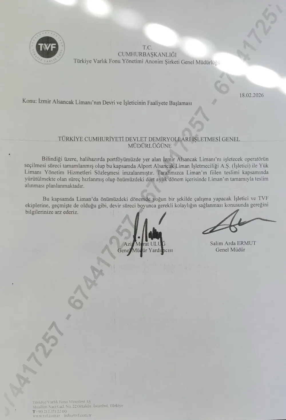 18 Şubat 2026 tarihli Varlık Fonu Genel Müdürü Arda Ermut ve Genel Müdür Yardımcısı Aziz Murat Uluğ’un imzasını taşıyan ve TCDD Genel Müdürlüğü’ne gönderilen belgeye göre, İzmir Alsancak Limanı’nın işleticiliği, Albayrak Grubu'nun ortakları Muzaffer Albayrak, Mustafa Albayrak, Muhammet Sinan Albayrak'ın 23 Ocak'ta kurduğu İstanbul merkezli Alport Alsancak Liman İşletmeciliği A.Ş.’ye verildi.