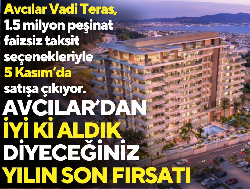 Avcılar Vadi Teras, 1.5 milyon peşinat, faizsiz taksit seçenekleriyle 5 Kasım’da satışa çıkıyor