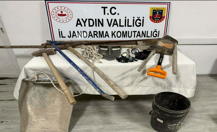Karacasu İlçe Jandarma Komutanlığı ekipleri, Başçayır Mahallesi Asar mevkisinde kaçak kazı yapıldığı yönünde aldıkları ihbar üzerine çalışma başlattı. Yapılan takip ve incelemelerin ardından belirlenen bölgeye operasyon düzenleyen ekipler, L.A., M.S., S.K., A.S., C.Y., H.S., K.A. ve F.A.'yı kazı yaparken yakaladı. Bölgede yapılan incelemede, kaçak kazıda kullanılan ahşap saplı madenci kazması, demir çubuk, kürek, 1,5 metre uzunluğunda mavi renkli manivela, 2 inşaat eldiveni, kafa lambası, el feneri, ahşap balyoz, 2 kova, sapsız arazi küreği, küçük ahşap saplı çapa, ahşap saplı kürek, 10 metre uzunluğunda çamaşır ipi, yaklaşık 10 metre uzunluğunda halat, yarım kesilmiş bidon, 3 demir profil, demir murç ve ahşap saplı keser ele geçirildi. Gözaltına alınan 8 şüphelinin jandarmadaki işlemlerinin devam ettiği öğrenildi.