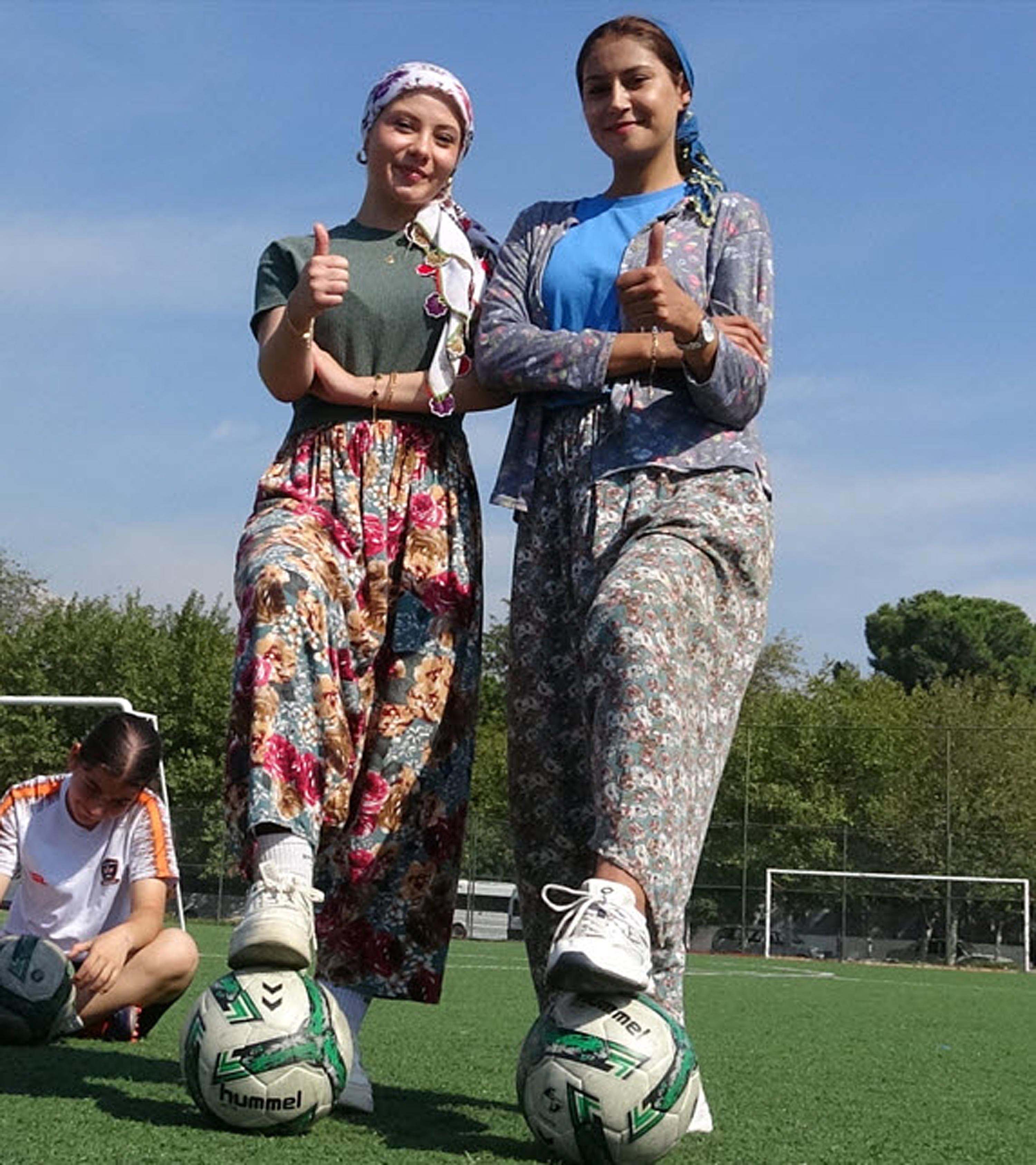 Aydın'ın Germencik ilçesinde yaşayan Meryem Torlup (22), küçük yaşta başladığı futbol tutkusunu hem futbolculuğa hem de antrenörlüğe dönüştürdü. Başarı hikayesi yazan Torlup hem top koşturuyor hem de şalvarıyla geldiği antrenmanlarda yeni futbolcular yetiştiriyor.