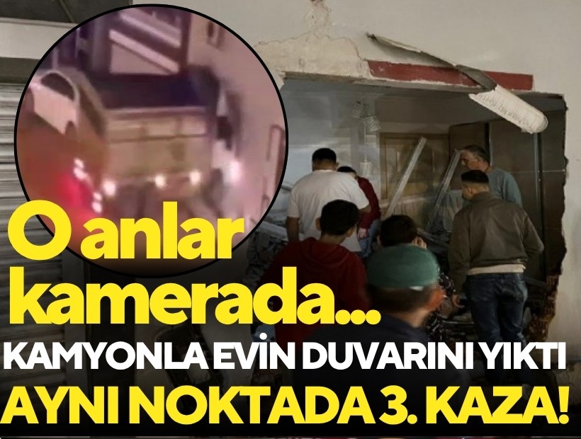 Aynı noktada 3. kaza: Kamyonla evin duvarını yıktı! O anlar kamerada