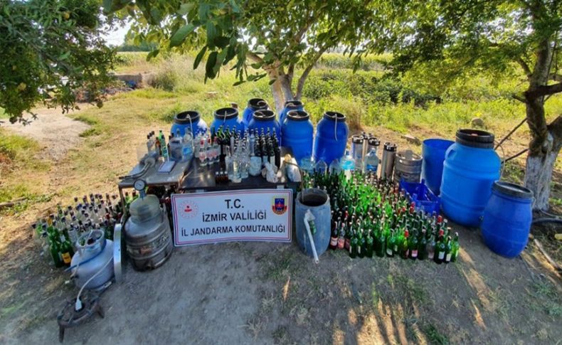 İzmir İl Jandarma Komutanlığı KOM Şube Müdürlüğü ve Kınık İlçe Jandarma Komutanlığı ekiplerince halk sağlığının korunması ve vergi kaçakçılığının önlenmesi tedbirleri kapsamında il genelinde kaçak ve sahte içki ticareti ile kullanımının önlenmesine yönelik icra edilen istihbari çalışmalar neticesinde, Kınık ilçesi Yaylakent Mahallesinde bulunan A.G. isimli şüphelinin bağ evinde operasyon düzenlendi. Operasyonda bir adet 50 litrelik, üç adet 19 litrelik, üç adet 10 litrelik ve üç adet 5 litrelik şişeler içerisinde sahte votka; 29 adet 100 cl'lik, iki adet 70 cl'lik, üç adet 50 cl'lik ve bir adet 1 litrelik şişeler içerisinde sahte rakı; 10 adet 150 cl'lik şişeler içerisinde sahte şarap olmak üzere toplamda 227,25 litre sahte içki ile iki adet damıtma cihazı, dört adet distilasyon cihazı ve muhtelif alkol şişesi ele geçirildi. Şüpheli A.G., olayla ilgili gözaltına alındı. (İHA)