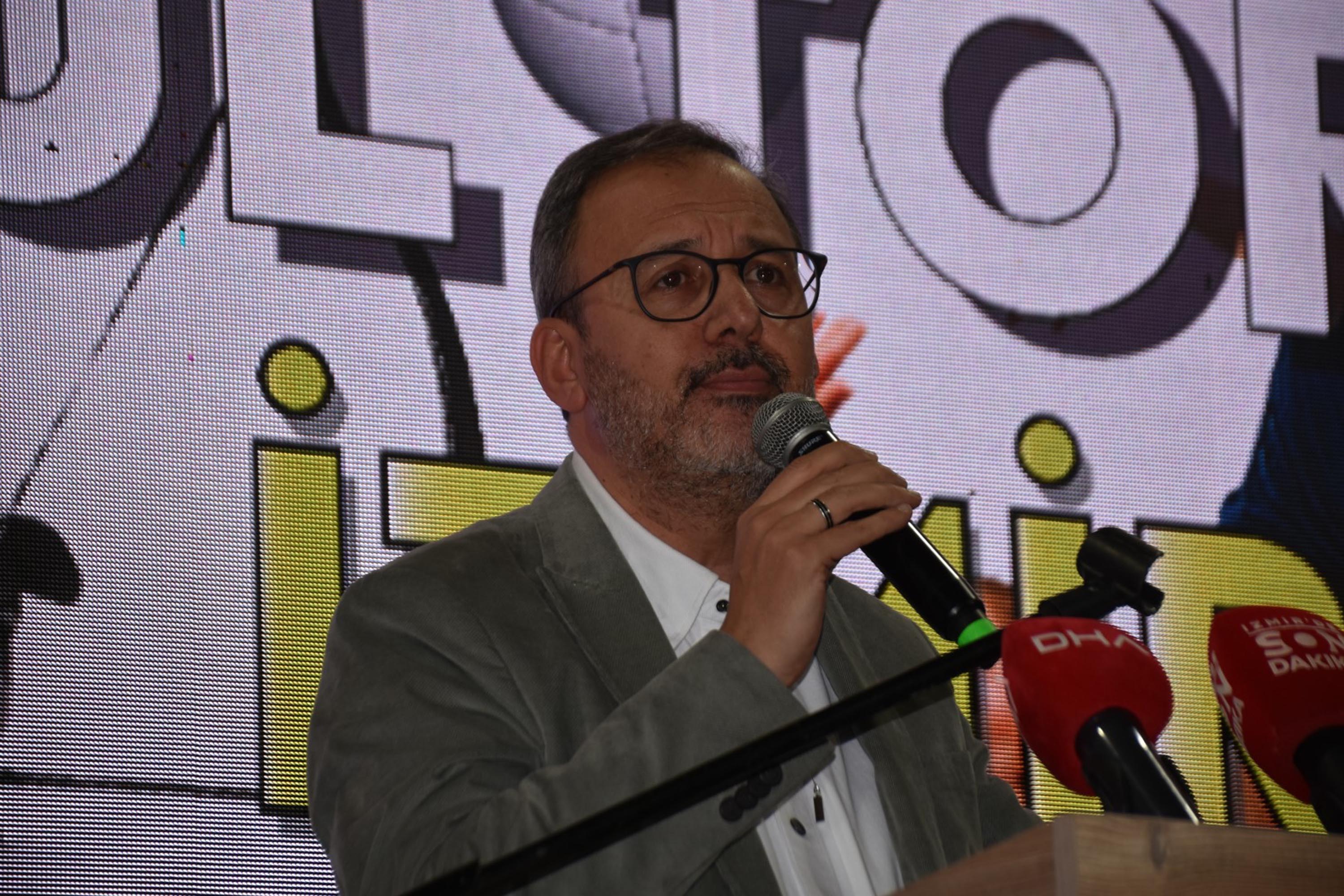 "Milli takımlarımız Riyad’da İslam Oyunlarında 72 altın, 44 gümüş, 39 bronz toplam 155 madalyayla birinci sırada Türkiye vardı. İşitme engelliler futbol takımımız Japonya’da olimpiyat şampiyonu oldu. 110 metre engelli sporcumuz, olimpiyat şampiyonu oldu. Şampiyonlar gelmeye devam ediyor. Atletizmde başarılı sporcularımız İslam Oyunları'nda madalyaları topladı. Sporculara yatırım yapan kulüplerimize teşekkür ediyoruz. Göztepe kulübünü, Karşıyaka’yı, Altay’ı, Altınordu’yu, İzmir'in takımlarını alkışlıyoruz. Bize yeni Dünya Olimpiyat Şampiyonları lazım. Yeni şampiyonlar istiyoruz. Hedefimiz Los Angeles 2028 Olimpiyatları. Türkiye büyük organizasyonlara imza atıyor. 2032 Avrupa Futbol Şampiyonası'nı İtalya'yla beraber Türkiye organize edecek. Avrupa Voleybol Şampiyonası Türkiye'de yapılacak. Basketbolda 12 dev adam Avrupa'da final oynadı ve ikinci oldu. Onlar Dünya Kupası elemelerine devam ediyorlar. Bayan Voleybol Milli takımımız dünya şampiyonasında final oynadı. Filenin sultanları dünya ikincisi oldu. Her alanda şampiyonlar yetişmeye, altyapılarda büyük projeler yapılmaya ve sporcularımız bayrağımızı dalgalandırmaya devam ediyor. Sporun tabana yayılması için çalışmalara devam ediyoruz. Ailelere diyoruz ki; çocuklarınızı yüzme havuzlarına, kapalı spor salonlarına, sahalara, futbol tesislerine, atletizm pistlerine getirin. Bakanlık olarak bize düşen en önemli görevlerden bir tanesi de çocuklarımızı bağımlılıktan uzak tutmak. Dijital bağımlılık, kötü alışkanlıklar, uyuşturucu başta olmak üzere kötü alışkanlıklardan, sporla çocuklarımızı önleyebiliriz. Spor önleyicidir, iyileştirir, birleştirir, toplumları kaynaştırır" diye konuştu.
