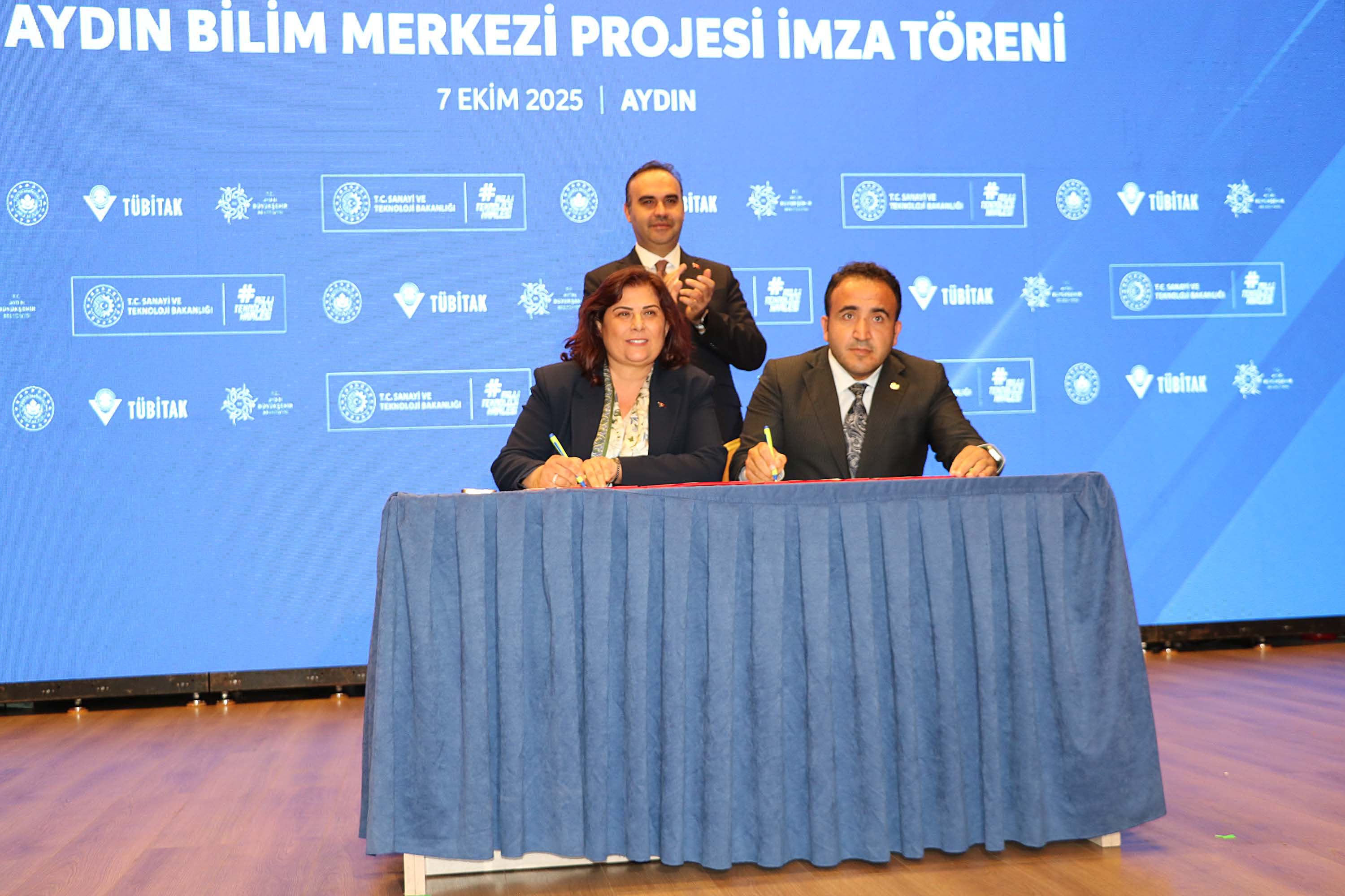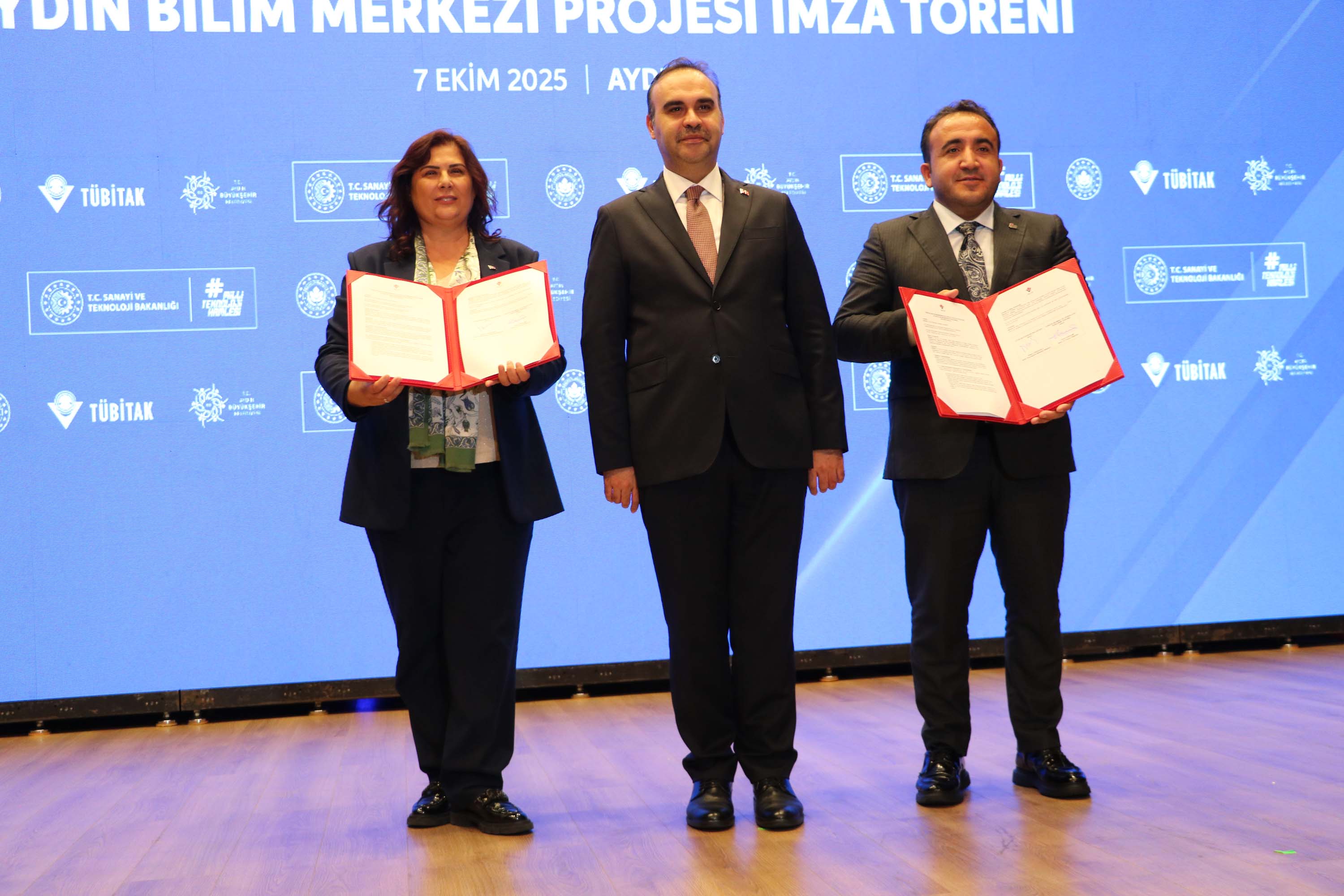 Aydın Büyükşehir Belediye Başkanı Özlem Çerçioğlu'nu ziyaretinde Aydınlı gençler ve çocuklar için neler yapabileceklerini istişare ettiklerini aktaran Bakan Kacır, "Türkiye'nin dört bir yanında bilim merkezleri kuruyoruz. Bu bilim merkezlerinde gençlerimiz, hatta çocuklarımız çok erken yaşlardan itibaren bilimle, teknolojiyle tanışıyor. Havacılık, uzay, tasarım, matematik, doğa bilimleri gibi alanlarda atölye çalışmalarına katılıyor. Etkileşim, interaktif sergilerle, bilimin heyecanını erken yaşlardan itibaren onların yüreklerine serpiyoruz. Kendileri de Tekstil Parkı'nı anlattılar ve çok nitelikli tesislere sahip olduklarını ifade ettiler. 'Bu parkta bir bilim merkezini hayata geçirelim' dediler. Onun ilk imzasını da bugün atarak 'Bismillah' demiş olalım. Şimdiden Aydın'ın gençlerine, çocuklarına bu bilgiyi verelim. Halihazırdaki bir fabrika binasının dönüşümünü gerçekleştireceğiz ve orayı Aydın'ın, gençlerinin, çocuklarının hizmetine hızla sunacağız. 2026'da kurdelesini birlikte keseriz" diye konuştu.