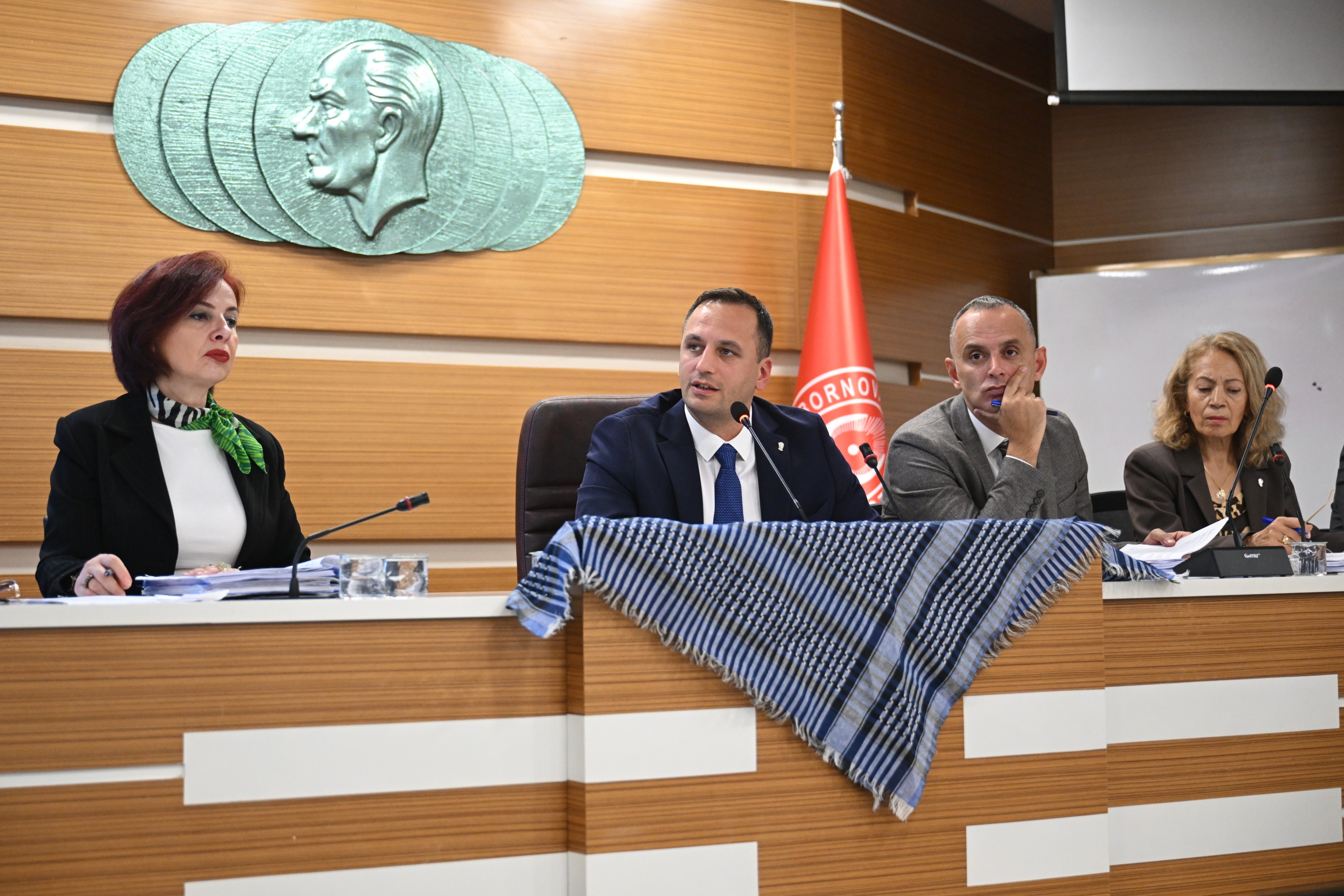 Bornova Belediyesi Ekim Ayı Olağan Meclis Toplantısı’nın açılışında Başkan Ömer Eşki, Yaser Arafat’ın poşusunu kürsüye asarak Filistin halkına destek mesajı verdi. Mecliste ayrıca Ergene Mahallesi’ndeki bir parka 1981’de şehit olan Hv. Plt. Üstğm. Mustafa Bilgen’in adı verildi. 2026 bütçe görüşmeleri ise 14 Ekim’de yapılacak.