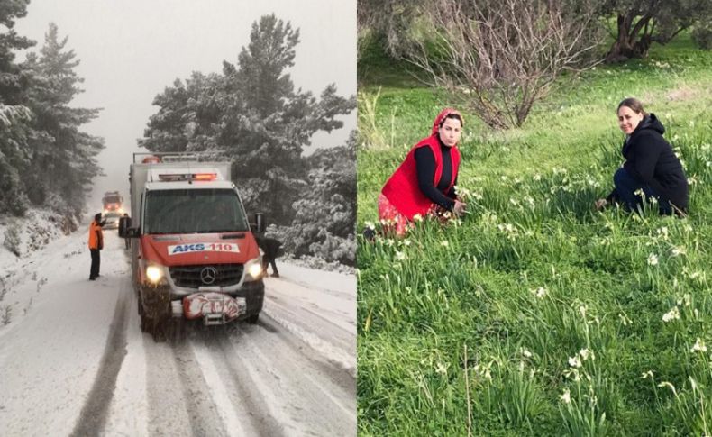 İzmir’in bazı noktaları karın etkisi altındayken Karaburun ilçesinde ise nergis çiçekleri kendini gösterdi.