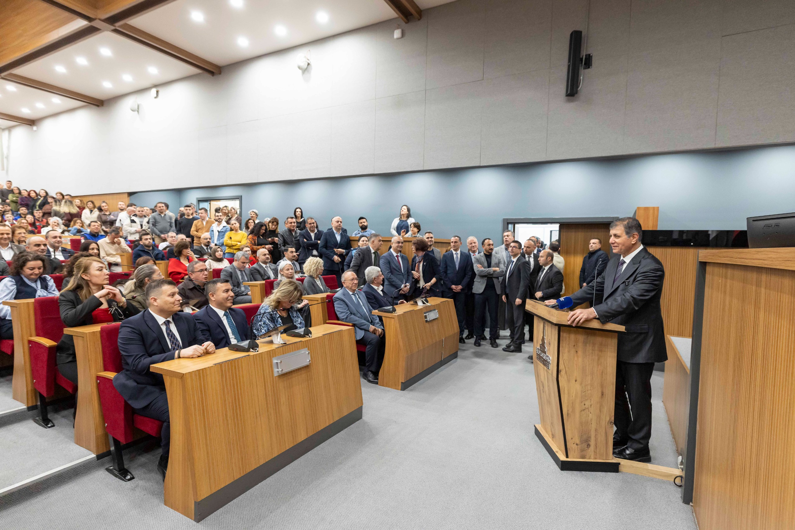 Konuşmasında önemli mesajlar veren İzmir Büyükşehir Belediye Başkanı Dr. Cemil Tugay, “Sizler yalnızca çalışanlar değil, bu kentin her köşesindeki temsilcilerisiniz. Yaptığınız her işte sadece bir görevi yerine getirmiyor, aynı zamanda İzmir adına karar veriyorsunuz. Attığınız her adım, bu kurumun karakterini belirliyor. Bu belediyenin gücü binasından değil, sizlerin sorumluluk duygusundan geliyor. Her biriniz bu kentin vicdanısınız. Bu kurumun gerçek sahipleri sizlersiniz. Siz işinizi sahiplenmezseniz bu şehir eksik kalır. Sizin emeğiniz olmadan İzmir, sadece bir coğrafya olur. Ben tek başıma bir belediye başkanıyım; ancak sizlerle birlikte İzmir’i yöneten büyük bir ailenin parçasıyım. Bu kapıdan içeri girdiğinizde yalnızca mesaiye başlamıyorsunuz; İzmir’in umuduna, yarınlarına ve huzuruna da sahip çıkıyorsunuz” dedi.