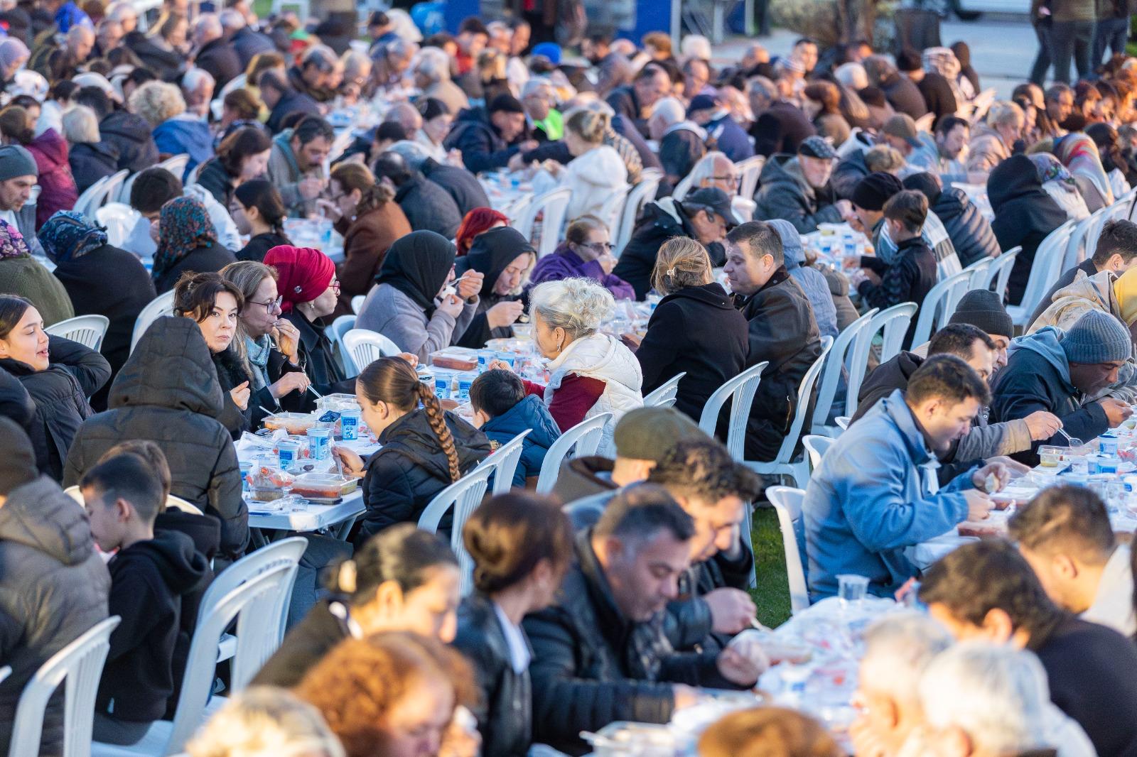Sosyal Hizmetler Dairesi Başkanlığı tarafından 2 bin 500 kişilik sıcak yemek ikramının yapıldığı iftar sofrasında, ilahi dinletisiyle başlayan programda Başkan Dr. Cemil Tugay, Güzelbahçelilerle selamlaşarak sohbet etti ve hatıra fotoğrafı çektirdi. İftar saati öncesinde Kur’an-ı Kerim tilavetinin ardından okunan akşam ezanı ile dualar eşliğinde oruçlar açıldı.