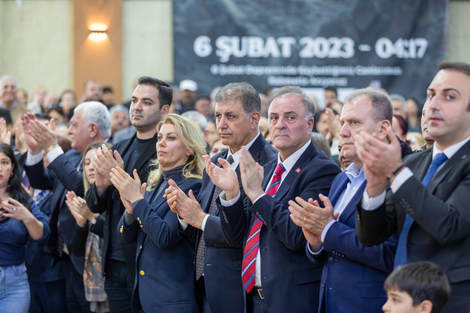 Cumhuriyet Halk Partisi (CHP) Genel Başkanı Özgür Özel ile İzmir Büyükşehir Belediye Başkanı Dr. Cemil Tugay, 6 Şubat 2023’te 11 ili etkileyen depremlerin üçüncü yılında Hatay’da rezerv alan mağdurlarıyla buluştu. Yurttaşların sorunlarını dinleyen Özel, çözüm önerilerini paylaştı. Konuşmasının sonunda Başkan Tugay, Nuri Aslan ve Vahap Seçer’i sahneye davet eden Özel, “Başkanlarımıza yürekten teşekkür ediyorum. Bu kentin yanında olmaya devam edecekler” dedi. Başkan Tugay ise İzmir’den Hatay’a yardım malzemeleri gönderildiğini belirterek, depremzedeler için dayanışmanın süreceğini vurguladı.