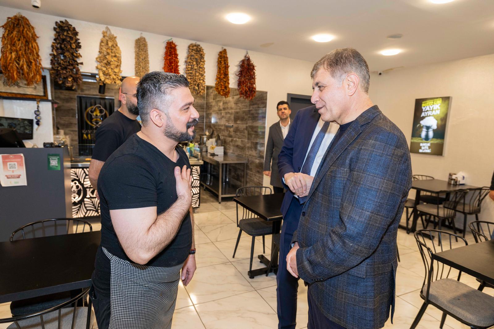 Yurttaşların sorunlarını dinleyen Başkan Tugay, esnaftan alışveriş de yaptı.