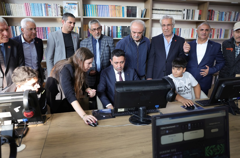 Bayraklı Belediyesinin eğitime desteği sadece dijital ortamla sınırlı değil. Uzun yıllardır hizmet veren Bayraklı Belediyesi Sosyal Etkinlik Merkezi, ortaokul ve lise öğrencilerine yönelik olarak; ders çalışma ve ödev desteği, LGS ve YKS’ye hazırlık çalışmaları, rehberlik ve danışmanlık hizmetleri sunarak ücretsiz eğitime katkı sağlamaya devam ediyor. Bu kapsamlı çalışmalar, Bayraklı’daki gençlerin eğitim düzeyini yükseltme ve fırsat eşitliğini sağlama hedeflerine güçlü bir katkı sunuyor. Ayrıca açılışın yapıldığı Soğukkuyu Mahallesi Şehit Kara Pilot Yüzbaşı Ümit Özerli Parkı’nın içinde yer alan Halime Çavuş Kütüphanesi de proje kapsamında öğrencilere hizmet verecek. Kütüphane içerisinde bulunan bilgisayarlar sayesinde öğrenciler, Bayraklı Dijital Dershane platformuna erişerek eğitim içeriklerinden ücretsiz olarak yararlanabilecek. Açılışın ardından Bayraklı Belediye Başkanı İrfan Önal ve beraberindeki heyet, Halime Çavuş Kütüphanesi'ne geçerek projeyi yerinde inceledi. Başkan Önal, kütüphanedeki bilgisayarlar aracılığıyla Dijital Dershane platformuna giriş yaparak uygulamanın arayüzünü ve 4K video ders içeriklerini bizzat kontrol etti. O sırada kütüphanede bulunan ve uygulamayı kullanmaya başlayan öğrenciler de yapılan bu önemli çalışmanın ilk meyvelerini görme fırsatı buldu. Başkan Önal, gençlerle kısa bir sohbet gerçekleştirerek onların platform hakkındaki ilk izlenimlerini dinledi.