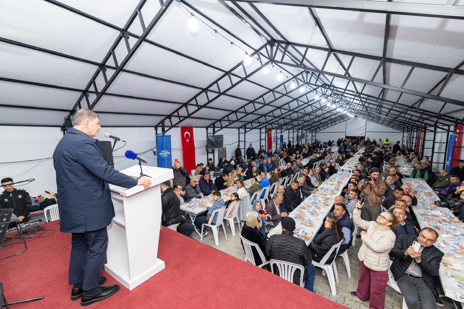 İzmir Büyükşehir Belediye Başkanı Dr. Cemil Tugay, konuşmasında ramazan ayının önemine değindi. Bu mübarek ayın, herkese insanların eşit olduğunu hatırlattığını söyleyen Başkan Tugay, “İnsan insana muhtaç. Ne zaman zor gün, dar gün olsa dönüp bir komşu arıyorsunuz. Birlik beraberlik iyidir. Birlik beraberlik duygusuyla yaşamak iyidir. O nedenle böyle bir sofrada bir arada olmak, bize çok şey öğretiyor” dedi.