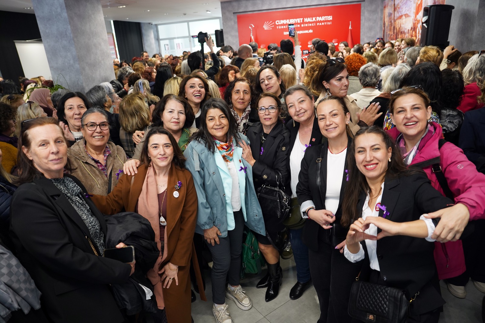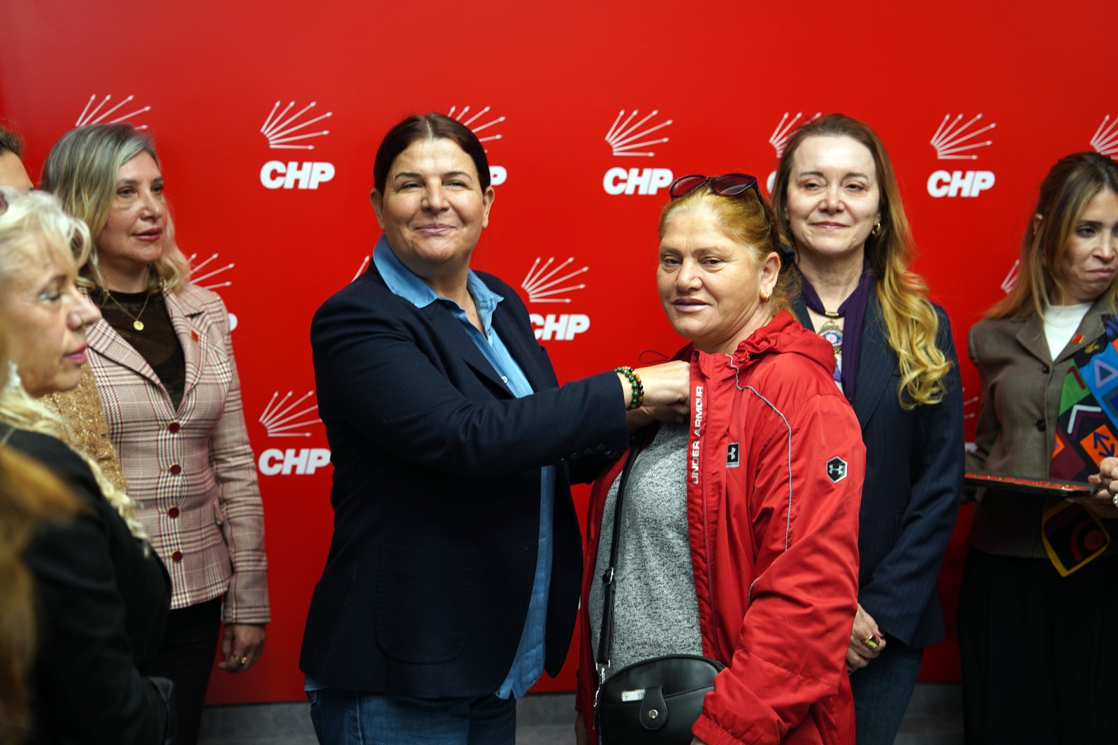 Kadınlara rozetlerini CHP İzmir İl Kadın Kolları Başkanı Zahide Kurun, CHP İzmir İl Sekreteri Duygu Kumaş Reel, Konak Belediye Başkanı Nilüfer Çınarlı Mutlu ve Foça Belediye Başkanı Saniye Bora Fıçı, CHP İzmir İl Başkan Yardımcısı Eylem Alan Çetiner, İl Eğitim Sekreteri Aslı Gülden Değirmenci, Kadın Kolları MYK üyeleri ve Kadın Kolları Yönetim Kurulu üyeleri takarken, düzenlenen törende beş yüz kadın CHP’ye üye oldu.