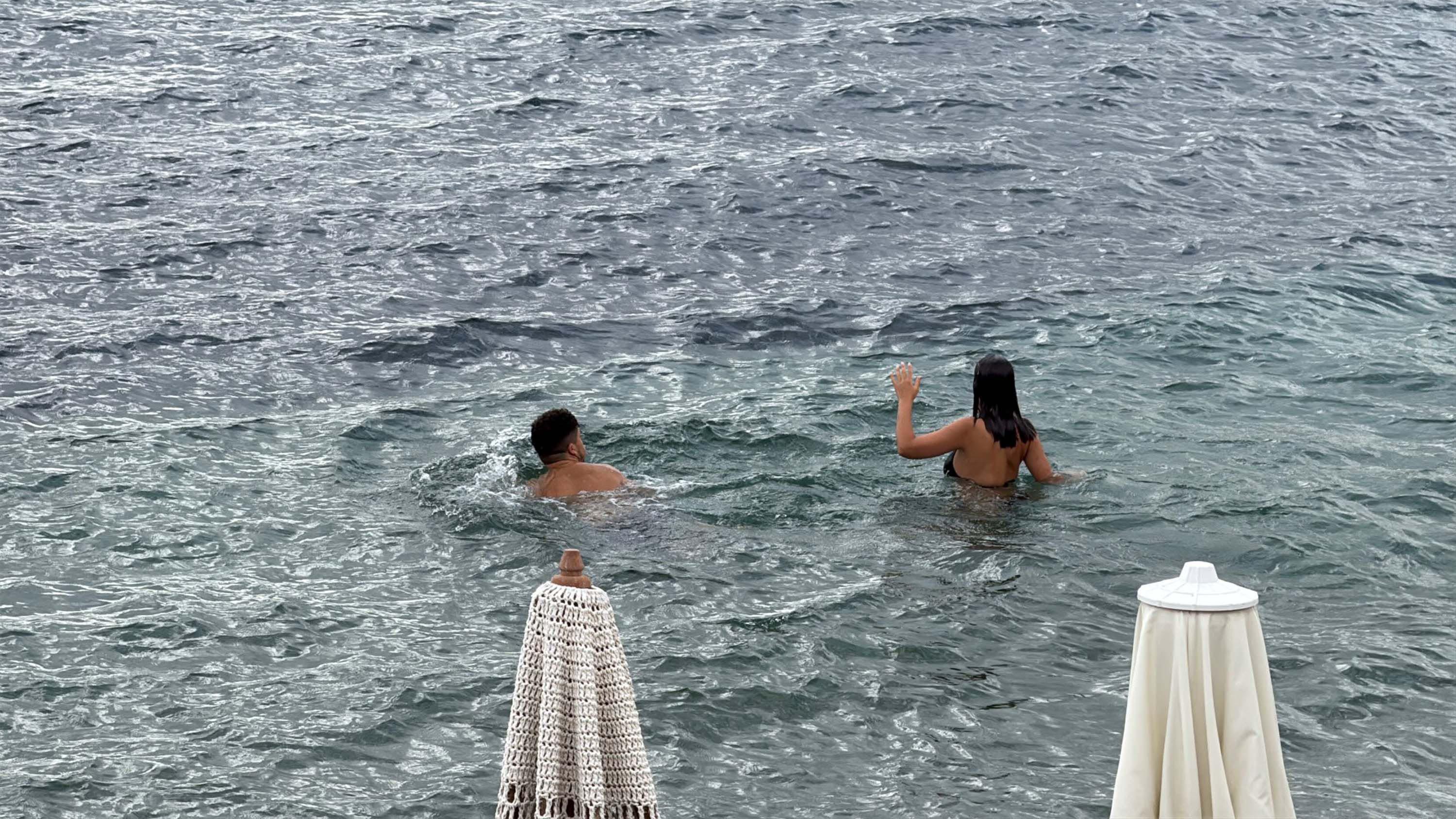 Bodrum'da sağanağa rağmen turistler denize girdi