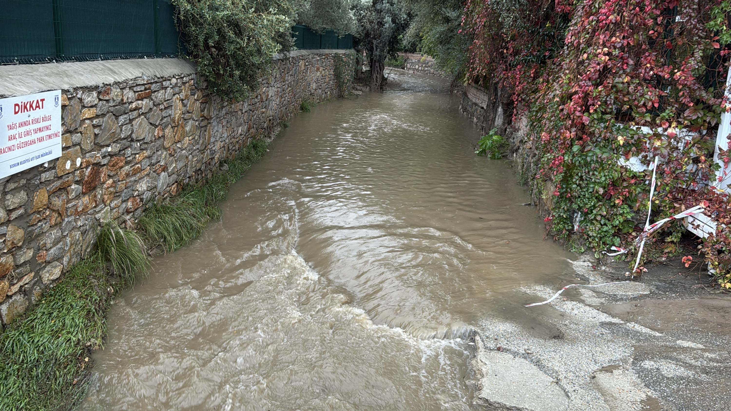 Araç sürücüleri ve yayalar, trafikte ilerlemekte güçlük çekti. Gümbet ve Bitez bölgelerinde derelerin debisi yükseldi.