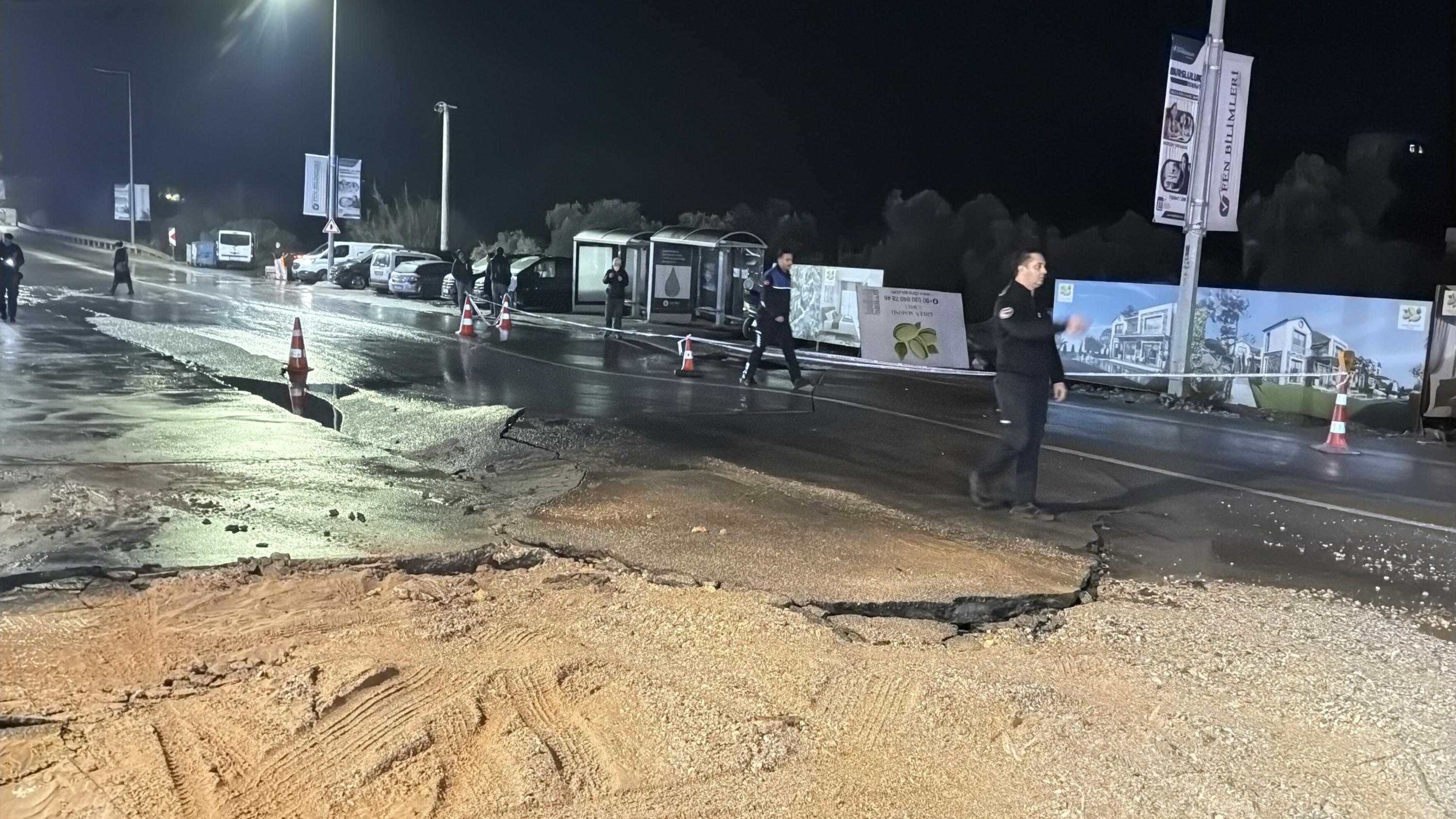 Bodrum’da ana su isale hattı patladı, asfalt çöktü