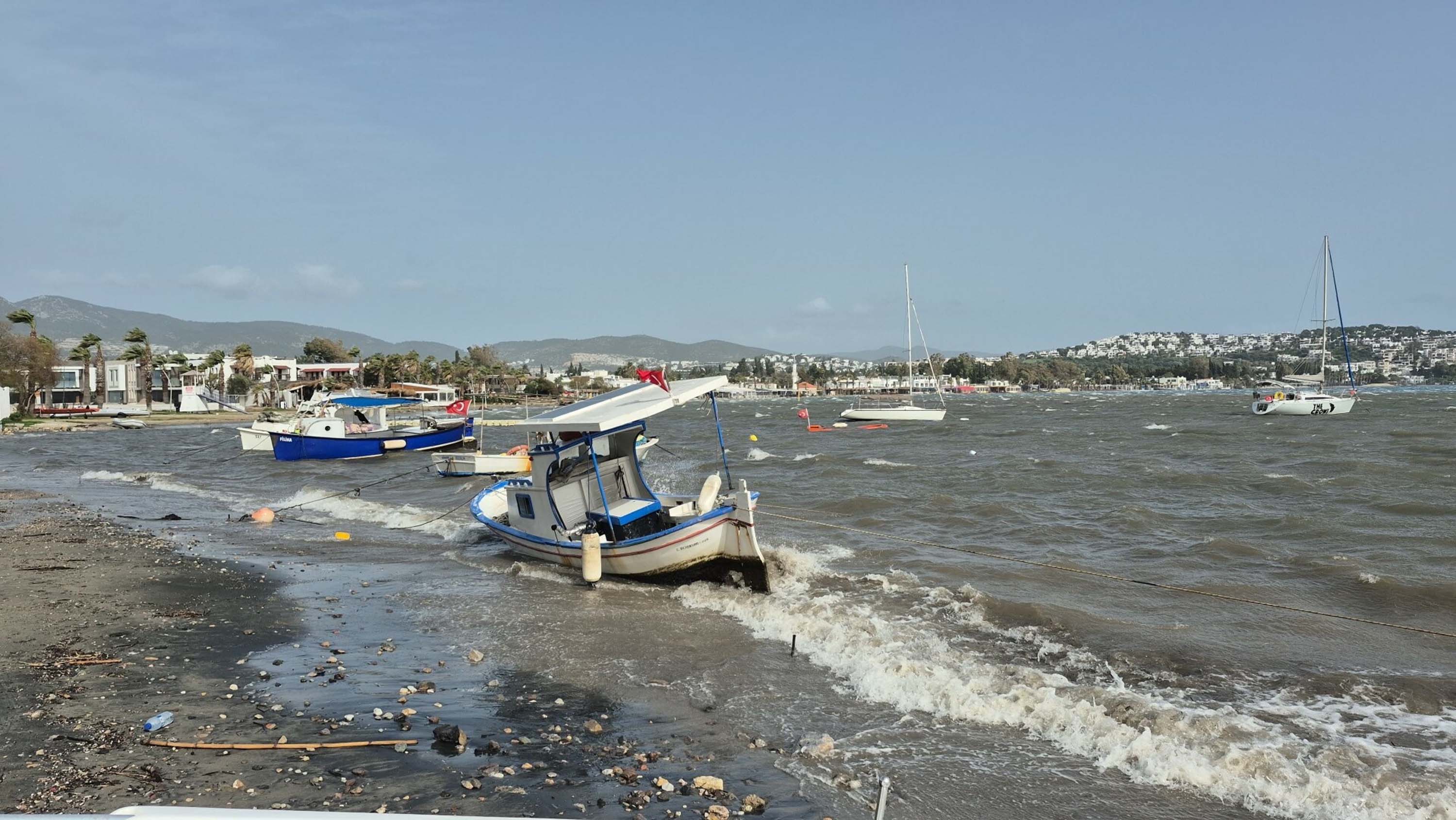 Bodrum Belediyesi ekipleri tarafından ağaçlar bulundukları yerden kaldırıldı. Gümbet Koyu’nda motoryat, Bitez Sahili’nde ahşap tekne karaya oturdu. Fırtınanın yarın sabah saatlerine kadar etkili olması bekleniyor.