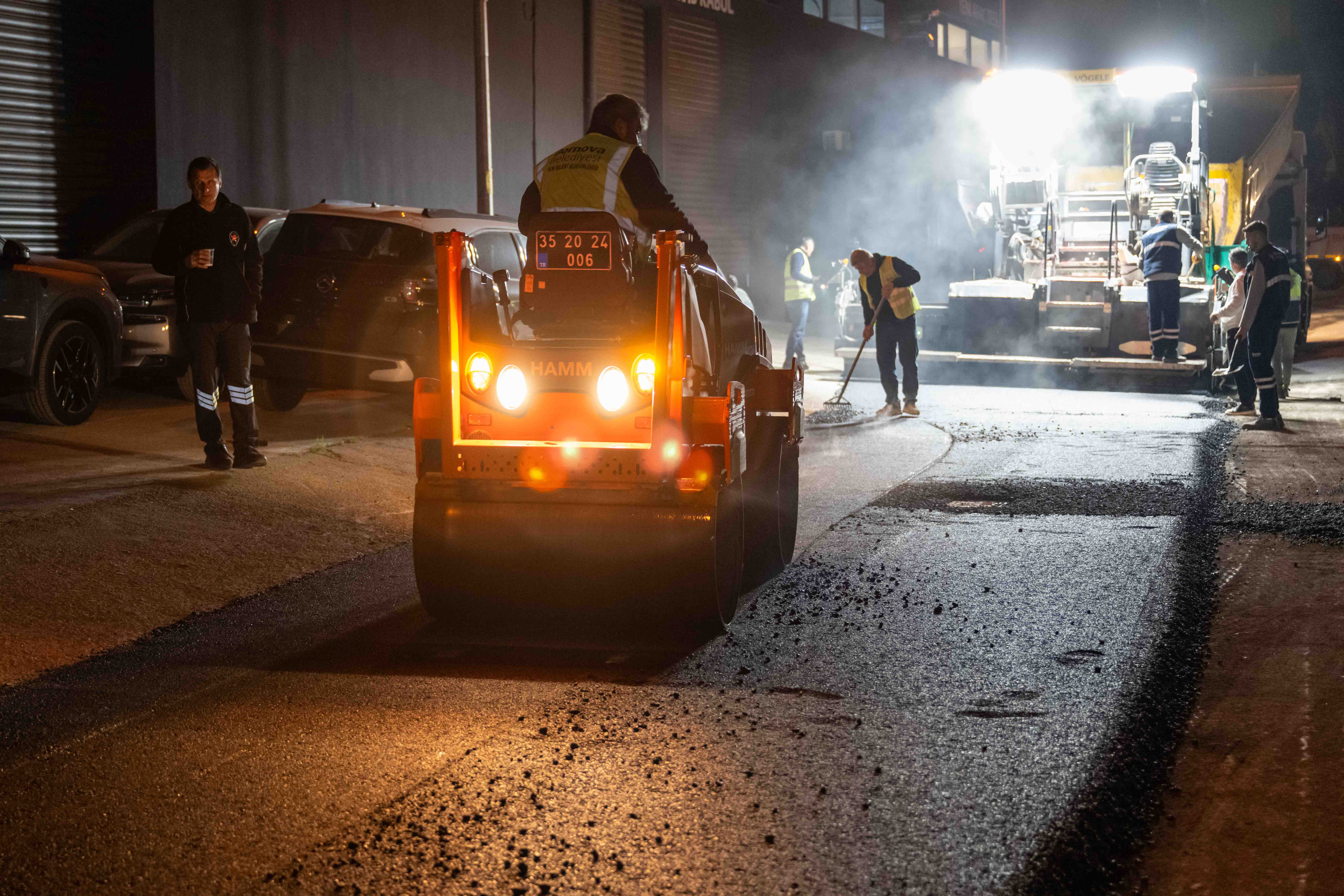 Devam eden ve kısa vadede planlanan çalışmalar hakkında Başkan Eşki’den yerinde bilgi alan Büyükşehir Belediye Başkanı Cemil Tugay, daha sonra asfalt serim makinesi (finişer) üzerine çıkarak çalışmalara bizzat katıldı. Desteği için Tugay’a teşekkür eden Başkan Eşki, “Bu akşam Cemil Başkan’ımızla birlikte sahadayız. Hem çalışan arkadaşlarımıza küçük bir moral vermek hem de yürütülen çalışmaları birlikte görmek istedik. Çok yoğun bir emek var, hepsine teşekkür ediyorum” dedi.