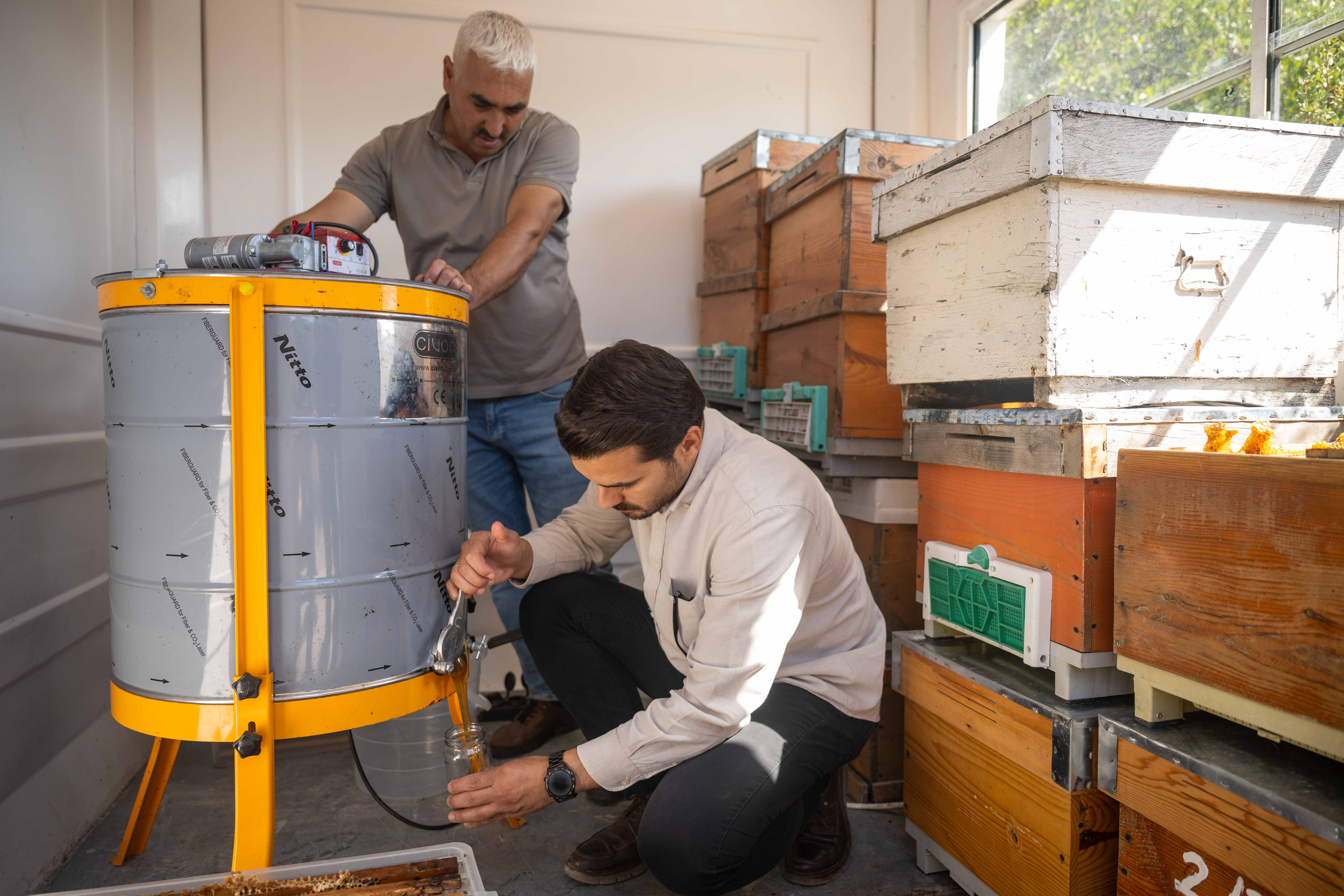 Bornova Belediyesi’ne ait kovanların yanı sıra kursiyerlerin kovanlarından da elde edilen ballar, düzenlenen etkinlikle hep birlikte hasat edildi. Etkinlikte arıcılar, hem emeklerinin karşılığını almanın sevincini yaşadı hem de üretimin önemini bir kez daha vurguladı.