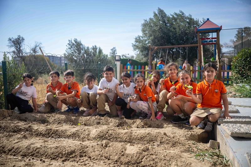 Bornova’da bir özel ilkokulun öğrencileri, okul bahçelerine kışlık sebze fideleri dikti. Bornova Belediyesi Tarımsal Hizmetler Müdürlüğü tarafından yürütülen etkinlikte öğrenciler; lahana, karnabahar, brokoli, kırmızı lahana, kereviz ve marul fidelerini toprakla buluşturdu. Ayrıca bahçelere tere, marul ve dereotu tohumları da ekildi.