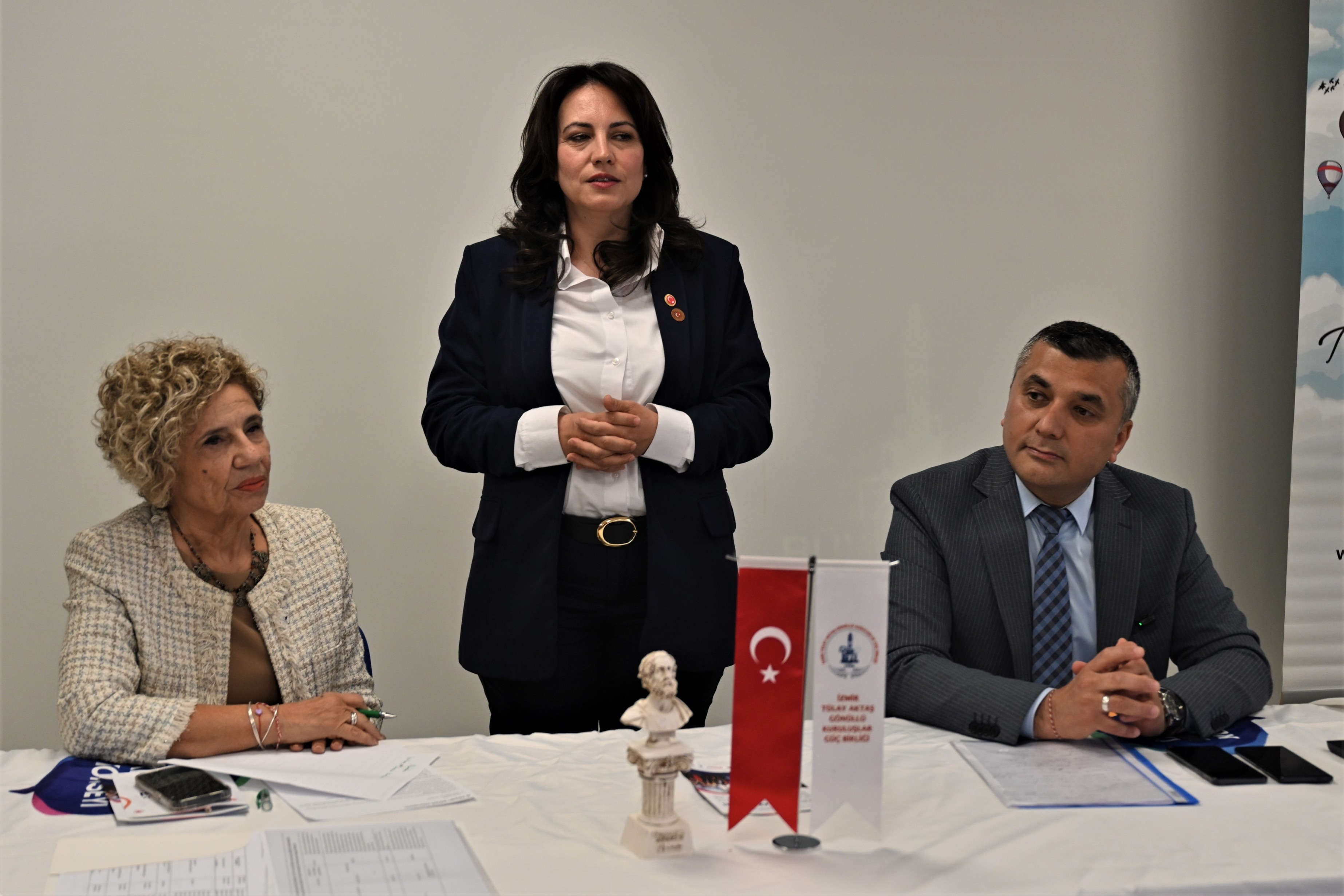 Toplantının sonunda Şahin Doğan, Dönem Sözcüsü Fatoş Dayıoğlu’na Bornova’nın simgelerinden Homeros heykelini takdim etti. Dayıoğlu ise konuşmacılara günün anısına hediyelerini sundu.