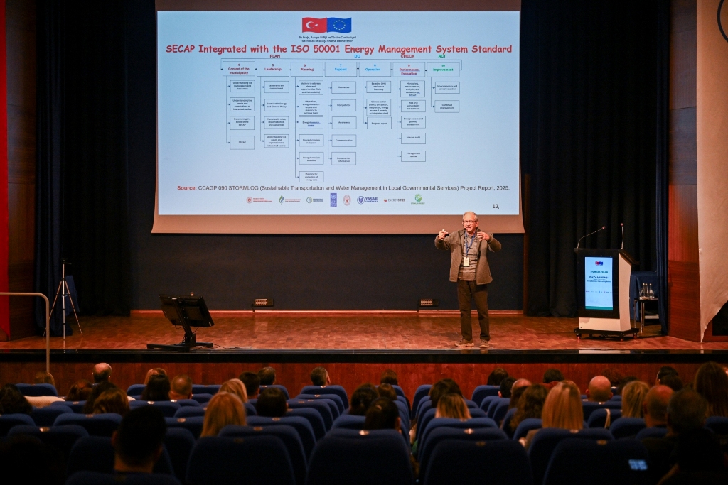 İklim Değişikliğine Uyum Hibe Programı kapsamında yürütülen Yerel Yönetim Hizmetlerinde Sürdürülebilir Ulaşım ve Su Yönetimi (STORMLOG) Projesi’nin kapanış toplantısı, Yaşar Üniversitesi Ana Konferans Salonu’nda gerçekleştirildi. Toplantı, projenin tanıtım filminin gösterimi ve Proje Uzmanı Stephan Dupas’ın video mesajıyla başladı. Dupas, projenin başarıyla tamamlandığını belirterek tüm paydaşlara teşekkür etti.