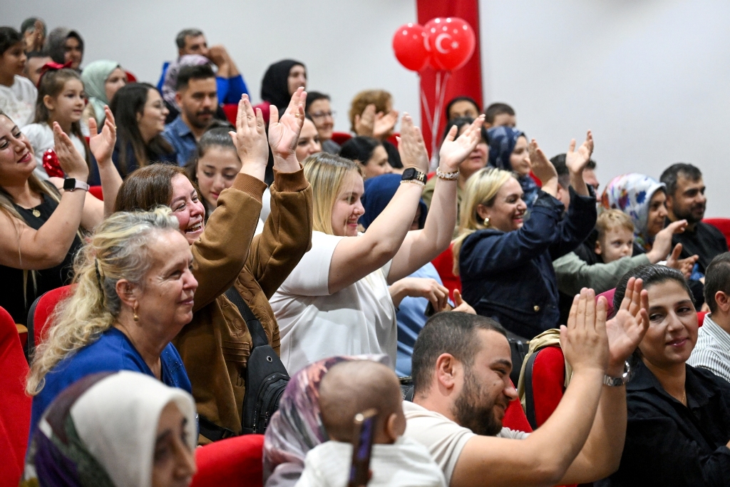 Ailelerinin yoğun ilgi gösterdiği etkinlikte, minikler performanslarıyla büyük beğeni toplarken veliler de cep telefonlarıyla bu özel anları ölümsüzleştirdi. Salonda renkli görüntüler oluştu, Cumhuriyet coşkusu miniklerin enerjisiyle birleşti.