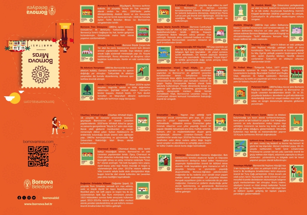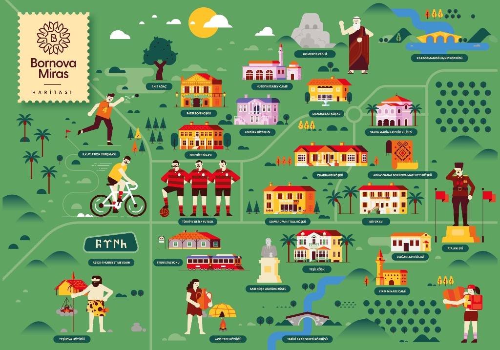 Bornova Miras Haritası: Kentin tarihi ve kültürel noktalarını tek bir görsel rehberde buluşturan, gezilebilir ve tematik duraklardan oluşan kapsamlı bir harita.
