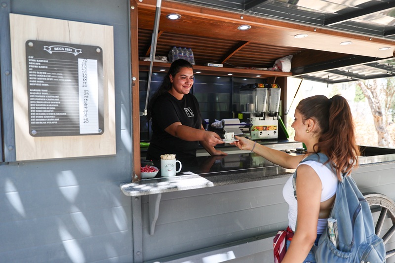 Çınarlar Buluşma Noktası’nda bulunan mobil 1923 Buca Kafe’de Türk kahvesini yalnızca 25 liraya sevdikleriyle sohbet ederek yudumlayabiliyor.
