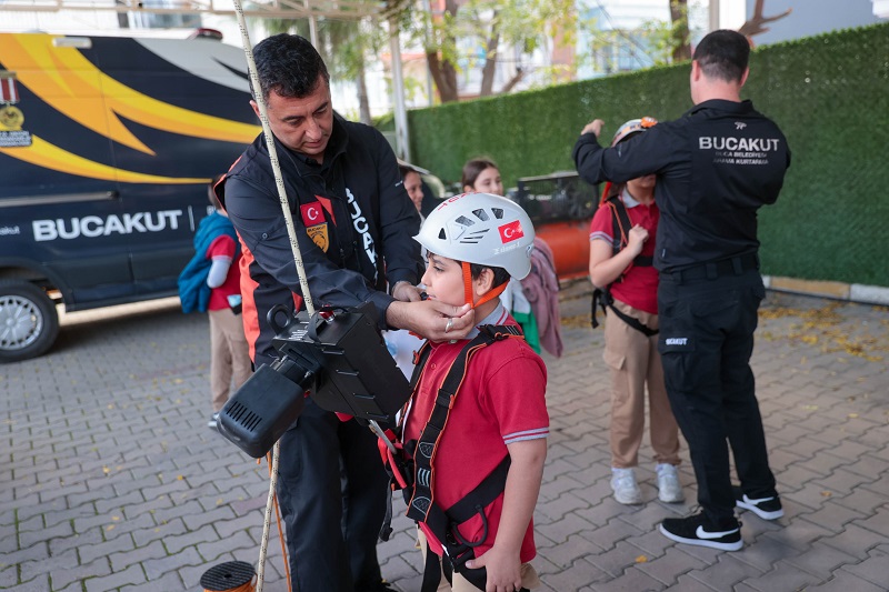 BUCAKUT, düzenli eğitim programı kapsamında, ilçe genelindeki okullarda düzenli olarak "Afet Farkındalık Eğitimi" veriyor. Ekipler, öğrencilere deprem, yangın, sel gibi olaylarda doğru davranış şekillerini, tahliye yöntemlerini ve toplanma alanlarının önemini uygulamalı olarak aktarıyor. Senaryo tatbikatları, güvenli alan belirleme, "çök-kapan-tutun" tekniği gibi temel bilgiler, çocukların anlayabileceği sade bir dille uygulamalı şekilde gösteriliyor.